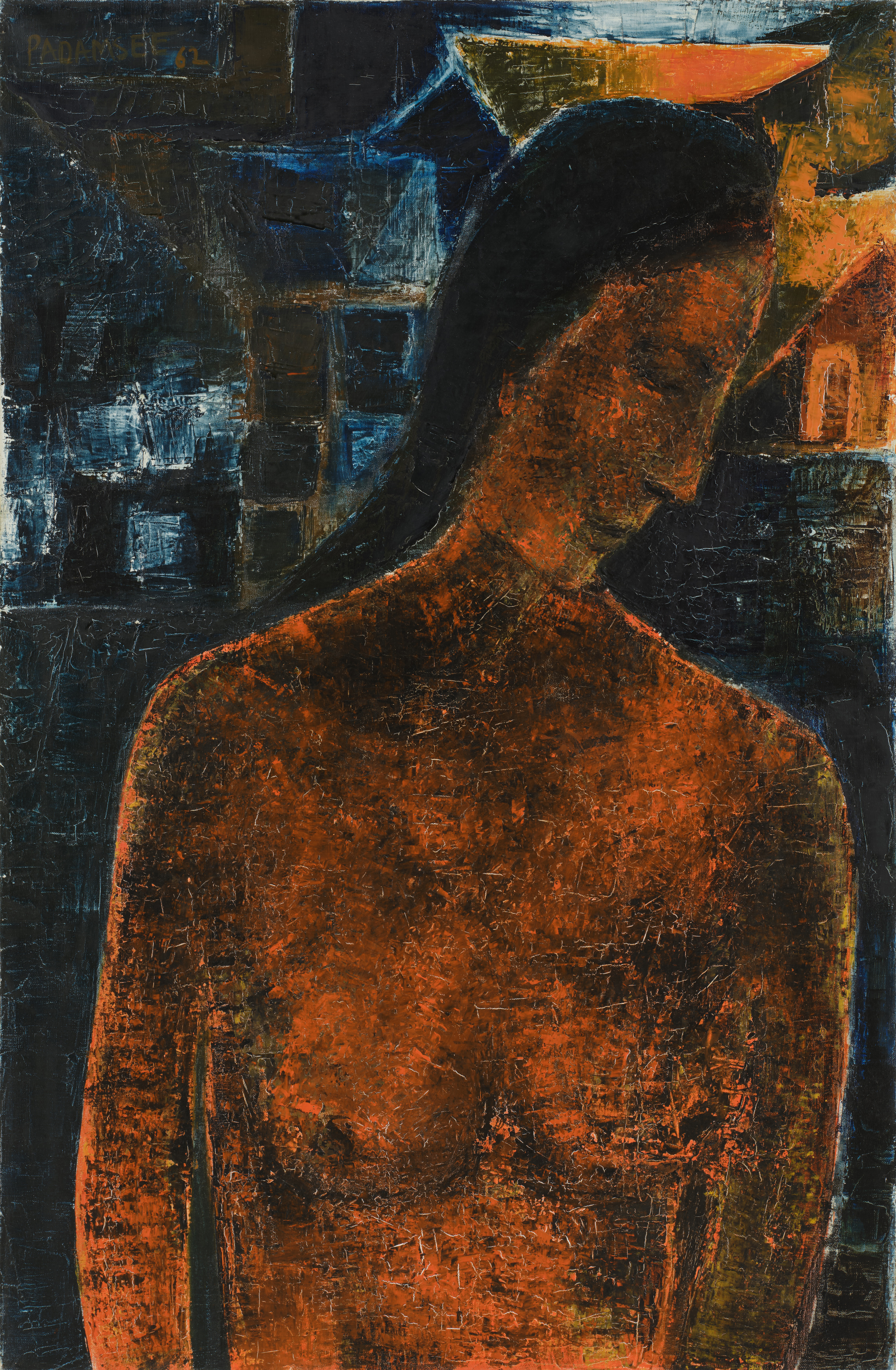 Akbar Padamsee was one of India's most significant modern artists and a pioneering figure in the Indian Progressive Artists' Group circle. Born in Mumbai, he studied at the Sir J.J. School of Art before moving to Paris in 1951, where he spent several years absorbing European modernism and developing his distinctive artistic voice. His work spans multiple mediums including painting, sculpture, photography, and computer graphics, and he is renowned for his contemplative approach to form, light, and philosophical inquiry. Padamsee's oeuvre is characterized by recurring motifs, metascapes (abstract landscapes), the mirror image series, prophets, and Greek lovers, which he explored with remarkable consistency and depth over decades. Padamsee's artistic style evolved from early figurative works influenced by European modernism to increasingly abstract explorations of form and space. His metascapes, begun in the 1970s, are meditative compositions that suggest landscapes through subtle gradations of grey tones, embodying a philosophical investigation into perception and reality. His mirror image paintings explore duality and reflection, while his nude studies and figurative works demonstrate a masterful understanding of human form and psychological depth. Working primarily in oil and often employing a limited palette dominated by greys, blacks, and earth tones, Padamsee created works of austere beauty that reflect his interest in both Eastern and Western philosophical traditions. Throughout his career, Padamsee exhibited widely in India and internationally, with works held in major collections including the National Gallery of Modern Art in New Delhi and Mumbai, and numerous private collections. He was also an influential teacher and thinker, contributing significantly to artistic discourse in India. His experimental approach extended to computer graphics in later years, demonstrating his continuous engagement with new technologies and ideas. Padamsee received numerous accolades including the Padma Bhushan in 2010, and his work commands significant attention in the South Asian art market. His death in January 2020 marked the end of an era for Indian modernism, but his contemplative, rigorously intellectual approach to art-making continues to influence subsequent generations of artists.
