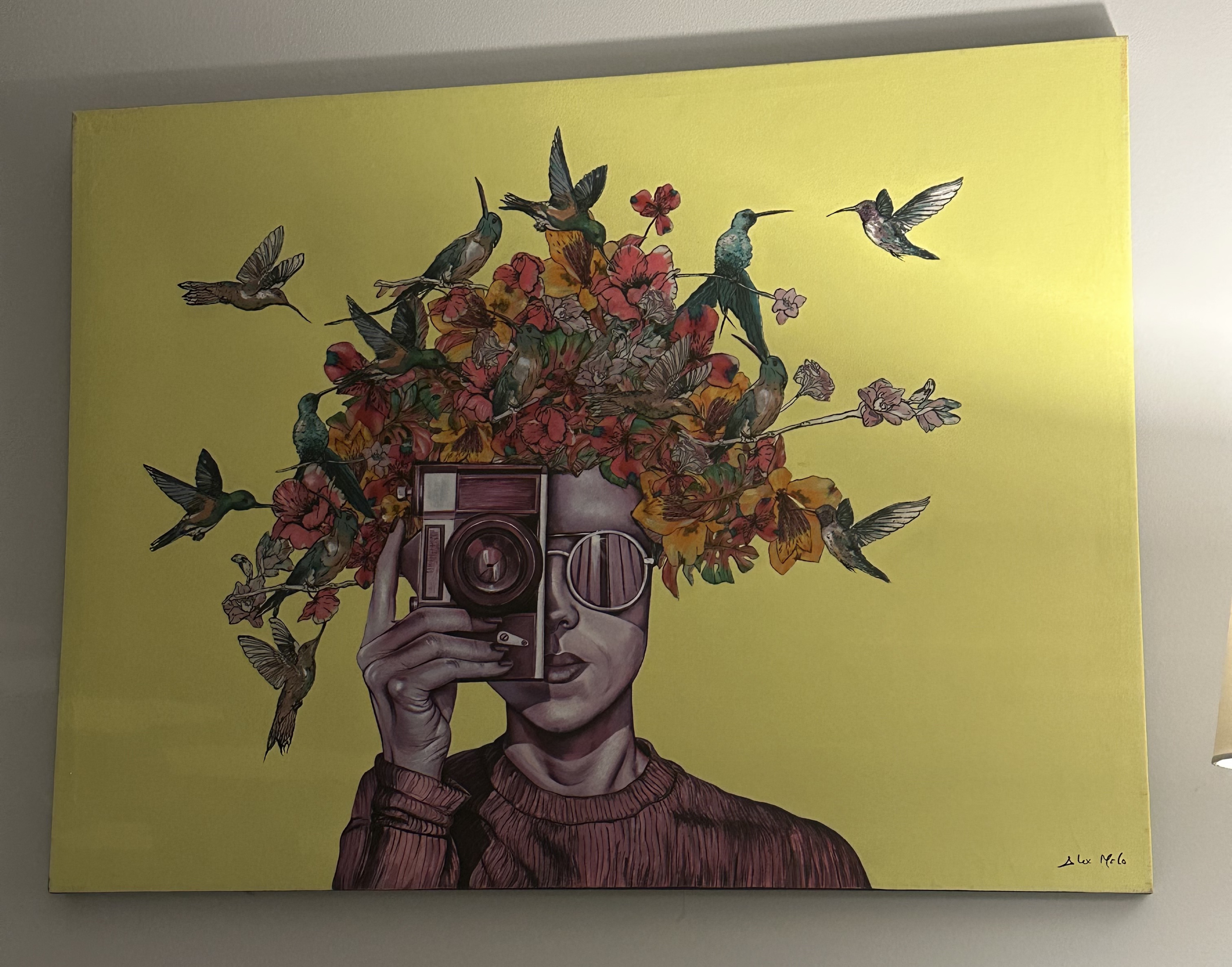Over the course of his career, Melo has developed a practice that sits confidently at the intersection of painting, mixed media, and the broader visual culture of the streets. He works primarily on canvas, often at large scale, deploying acrylic and mixed media in ways that allow for both spontaneous gesture and deliberate compositional structure. His color palette is one of his most immediately recognizable qualities: saturated, bold, and unapologetic, drawing from the chromatic intensity of Brazilian popular culture without ever feeling decorative or superficial. There is always something at stake in a Melo painting, some tension between the legible and the abstract, between the individual figure and the swirling forces of the social world around them.