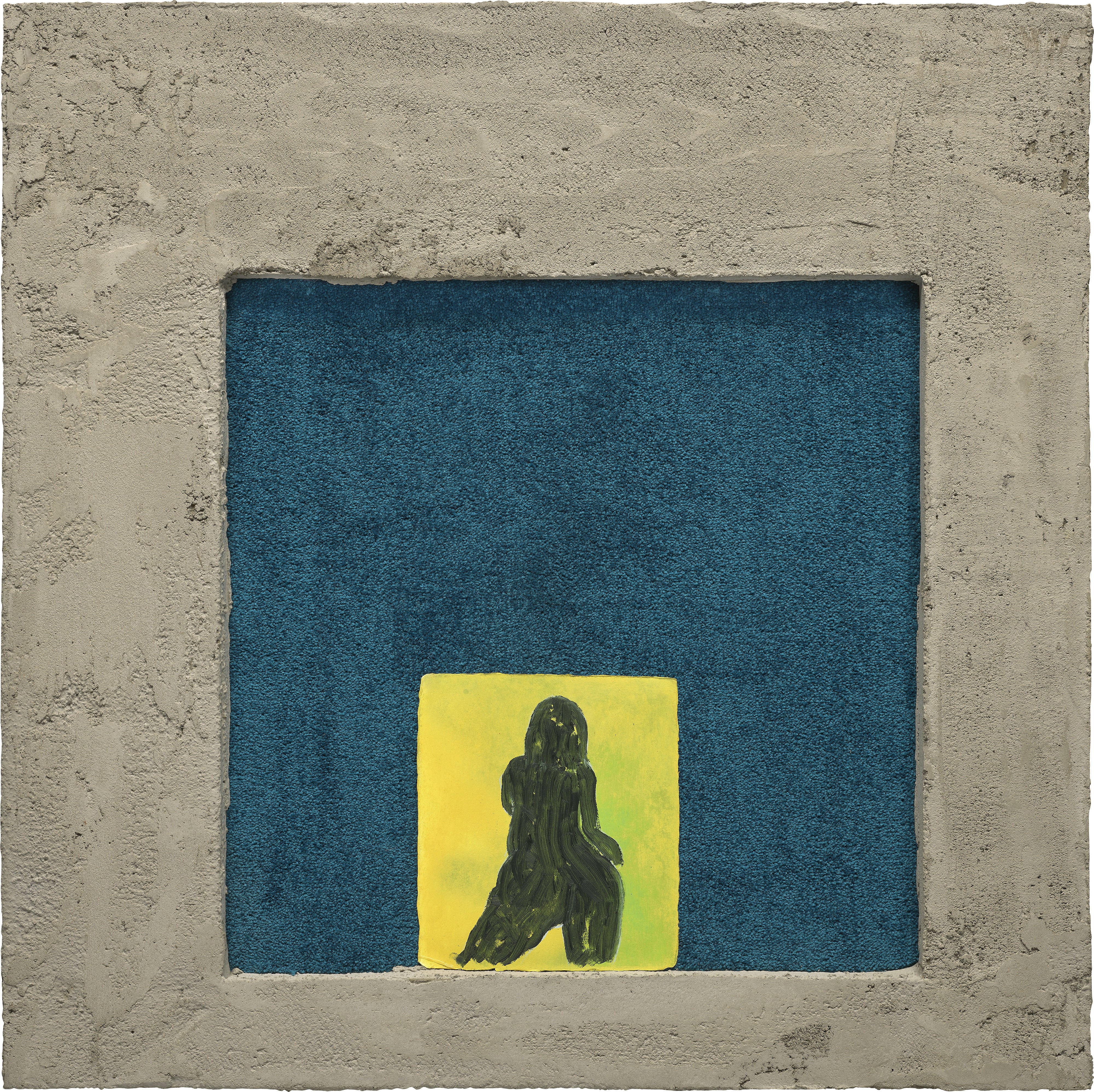 Among the works that most clearly articulate his vision is "Baby can I strip for you" from 2021, a commanding piece in carpet, concrete, wood, and mixed media on burlap paper that brings together the sensory richness of an interior domestic space with the raw physicality of construction materials. The work is simultaneously intimate and monumental, a quality that runs through much of his best practice. His earlier paintings on paper, including "1953 to 2017" and "1934," in which oil and yarn are combined on paper in the artist's own handmade frames, demonstrate how long he has been committed to this fusion of painting and textile, of dated memory and present touch. The frames themselves matter: made by Barrington, they extend the logic of the work outward, refusing the neutral white border that would separate art from life.