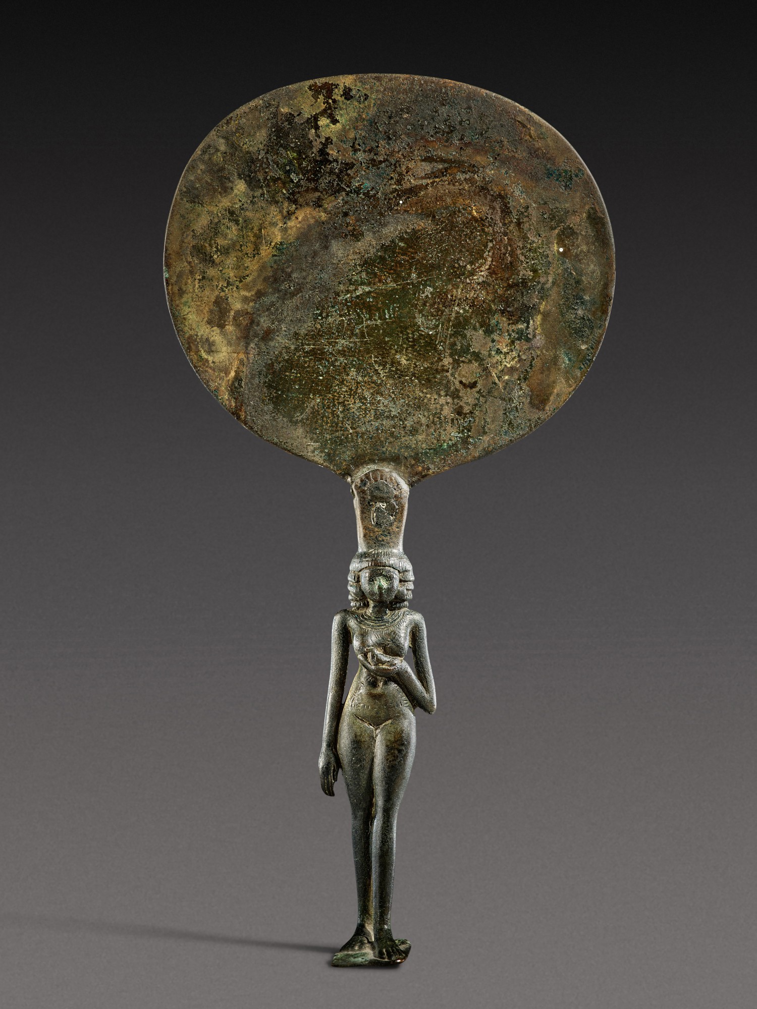 An Egyptian Bronze Mirror, 18th Dynasty, probably period of Amenhotep III/Akhenaten, 1390-1336 B.C.