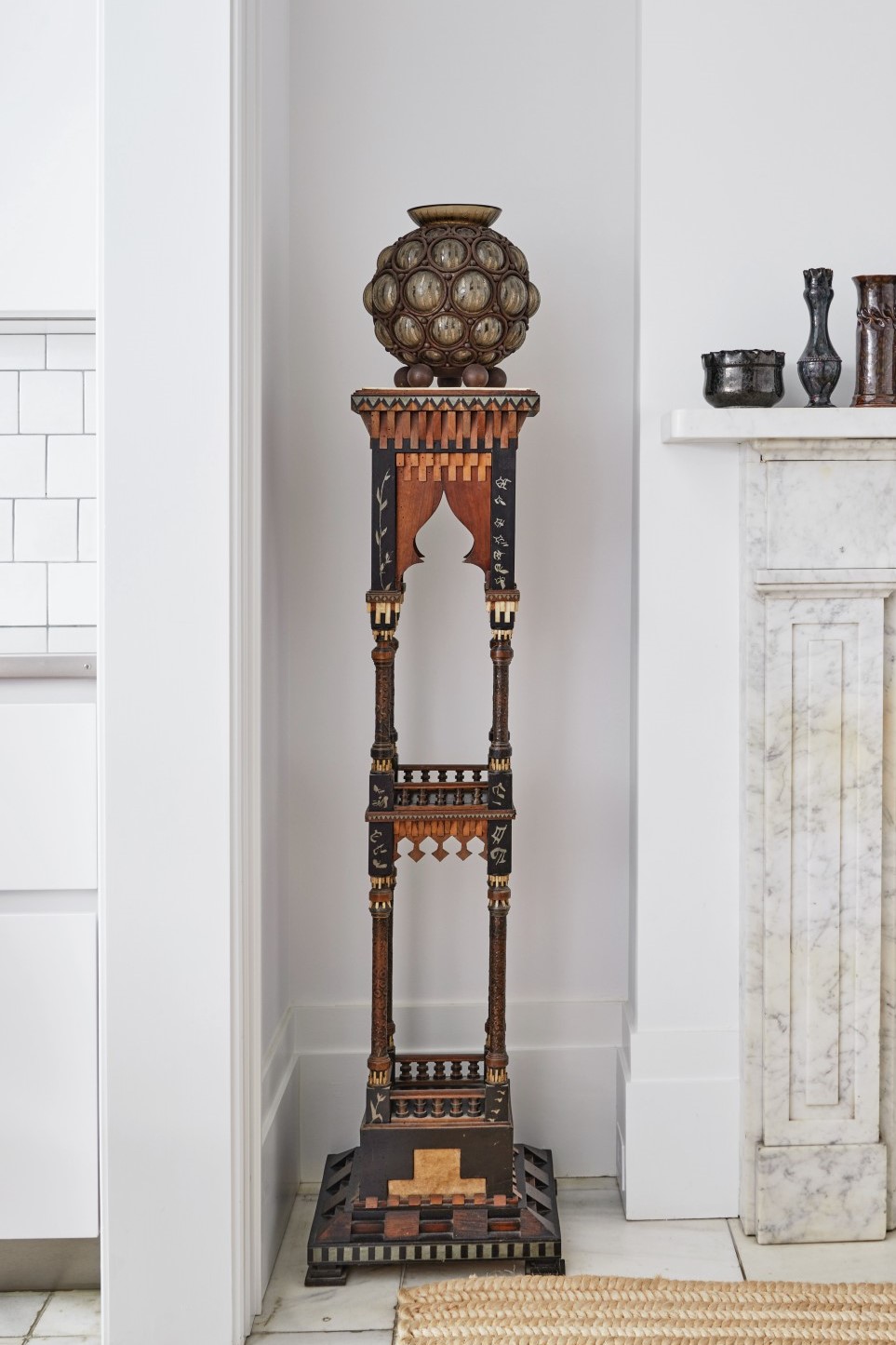 Carlo Bugatti (1856, 1940) was an Italian designer and artist celebrated for his wildly eccentric and highly original furniture, silverwork, and decorative objects that defied easy categorization. His work blended Moorish, Japanese, and Egyptian influences into a singular aesthetic that anticipated Art Nouveau and Symbolism. Father of automobile designer Ettore Bugatti, Carlo achieved international recognition at the 1902 Turin Exhibition where he won first prize for his innovative furniture designs.