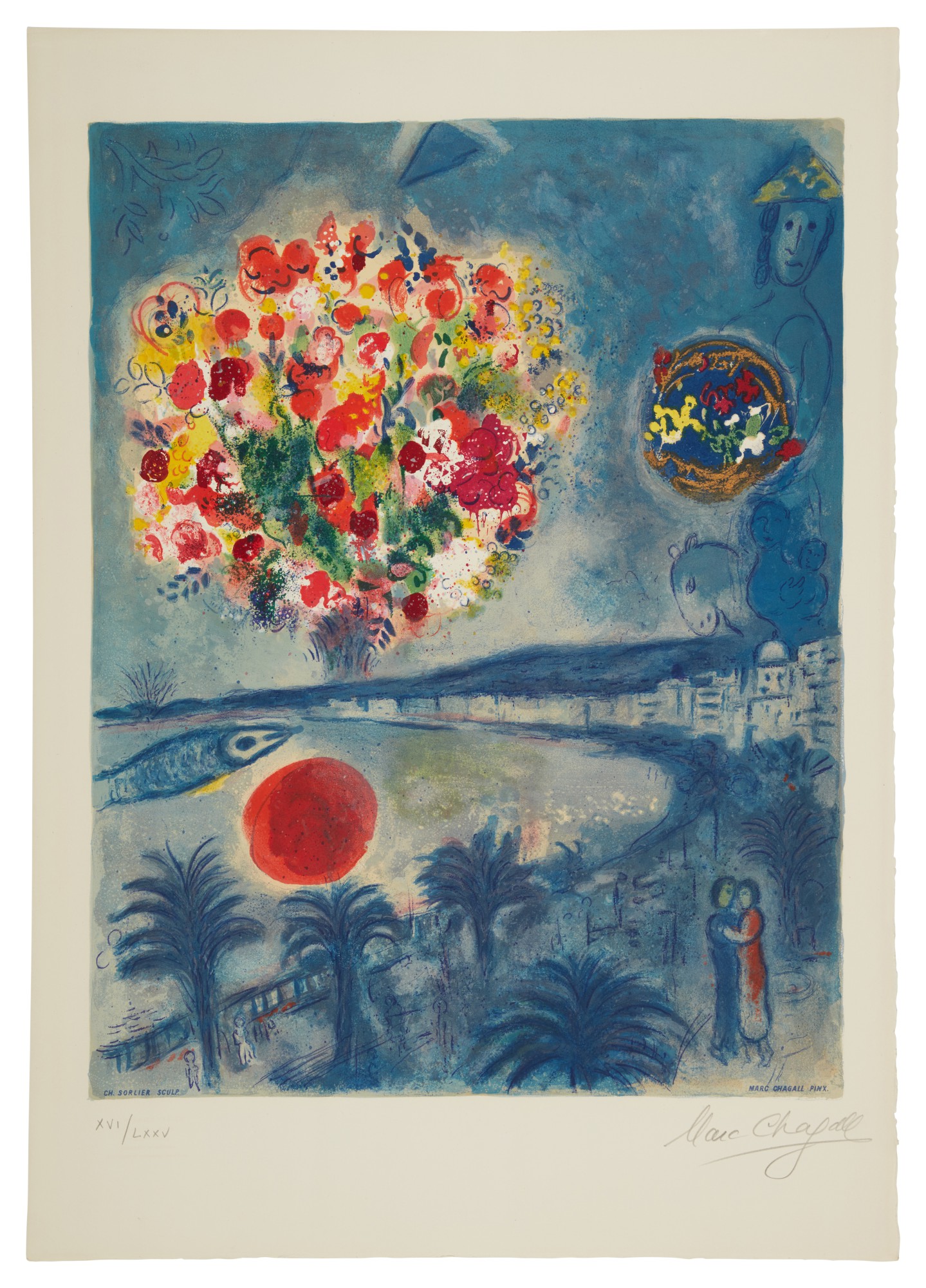 PrintCharles SorlierFrenchDecorativeModernismMarc ChagallColorfulLithographSurrealismCôte D'AzurBoldMourlot