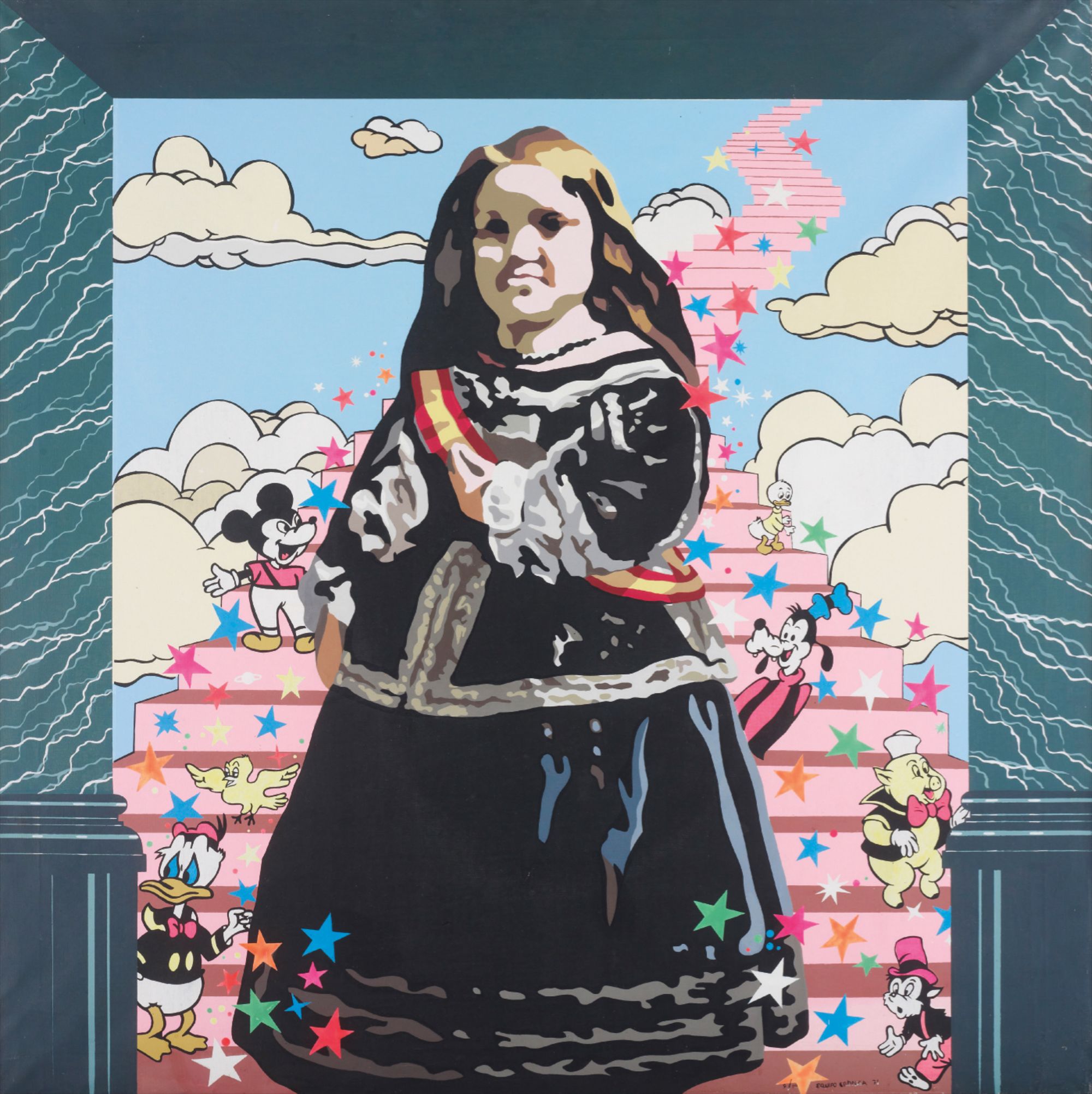 Equipo Crónica was a collaborative of artists Rafael Solbes and Manolo Valdés who created Pop Art paintings that appropriated Old Master imagery and combined it with contemporary political commentary. Their works critiqued Franco's dictatorship and consumerism through sophisticated visual juxtapositions that merged Spanish art history with mass media. Their work is held in major Spanish collections including the Museo Reina Sofía and IVAM.