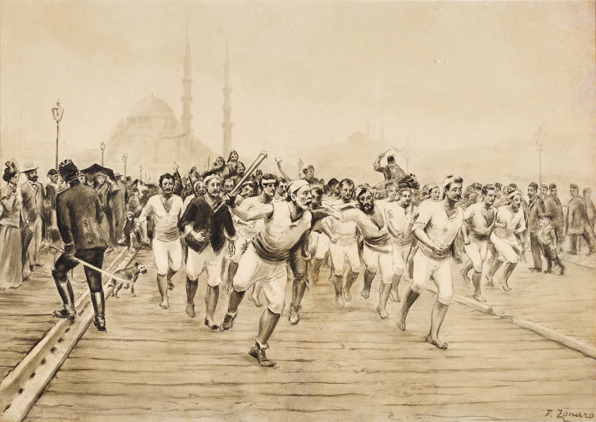Fausto Zonaro (1854, 1929) was an Italian painter who served as the official court painter to Sultan Abdülhamid II of the Ottoman Empire, living in Constantinople for nearly two decades. He became renowned for his Orientalist compositions depicting Ottoman life, landscapes, military scenes, and the vibrancy of Istanbul's streets and waterways. His works are highly sought after at auction, particularly in Middle Eastern and European sale rooms, for their vivid documentation of late Ottoman culture.