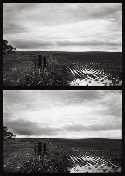 Ten Minutes in North Texas Number 1, Clay County, a gelatin silver print flush mounted and printed in 2011, exemplifies his way of seeing the American interior: spare, attentive, and charged with the weight of an entire regional history compressed into a single frame. Landscape, near Hastings, Minnesota brings a similar quality of sustained attention to the upper Midwest, where the flatness of the terrain and the marks of agricultural use become almost abstract when rendered in his precise tonal language. Both works reward close and repeated looking, revealing more with each encounter. For collectors drawn to photography with genuine intellectual depth, these prints represent exactly the kind of work that holds its meaning and its value over time.
