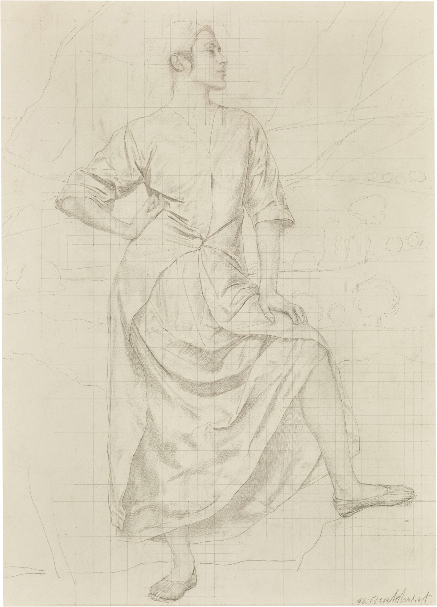 PortraitArt DecoClassicalBritish20th CenturyTemperaPreparatoryEtchingStudyPrintmakingFemale Figure1915