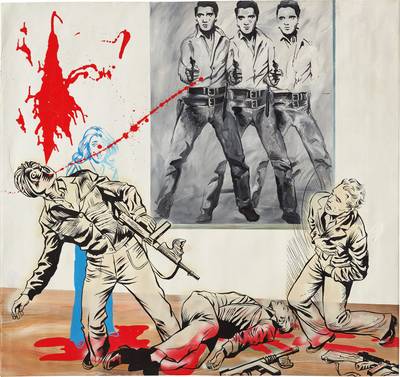 Gosha Ostretsov is a Moscow-born contemporary artist known for his irreverent, subversive works that blend pop art, comic imagery, and social commentary. His practice spans painting, sculpture, and installation, often incorporating cartoonish figures, graffiti aesthetics, and references to Soviet culture and Western pop iconography. He has exhibited widely in Russia and internationally, earning recognition as one of the distinctive voices of the post-Soviet Russian art scene.