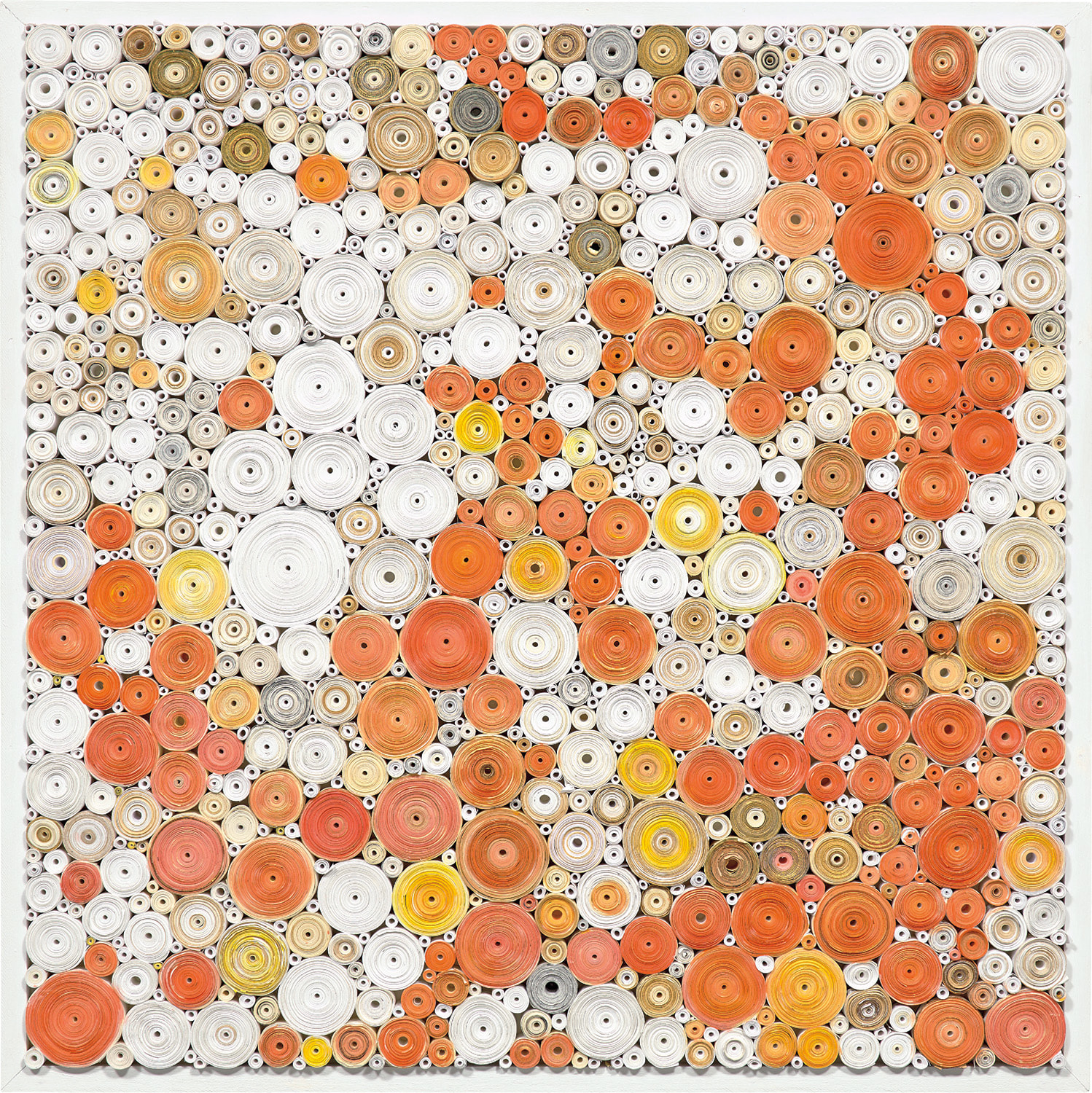 Hadieh Shafie is an Iranian contemporary artist known for her labor-intensive works that transform rolls of paper inscribed with the Persian word 'eshgh' (love) into intricate, sculptural coils and swirling compositions. Her practice explores themes of language, identity, repetition, and the materiality of text, drawing deeply on Persian calligraphic traditions while engaging with minimalist and conceptual art. She has exhibited internationally and her works are held in significant private and institutional collections worldwide.