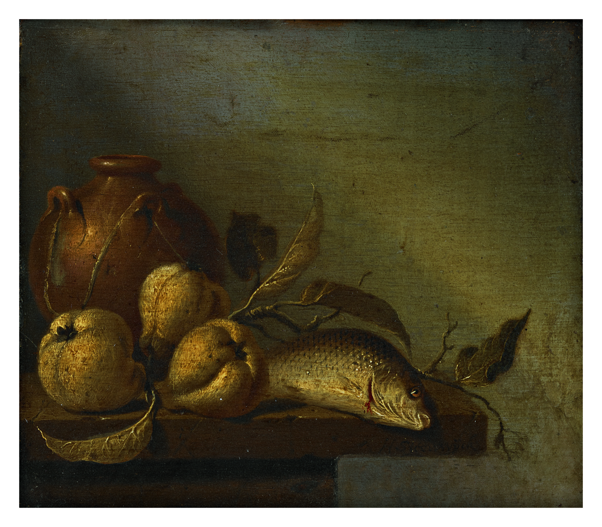 Still LifeJugOld MasterVanitasFishDutch ArtistMuted PaletteMale ArtistIntimate FormatBaroqueFruitArrangement
