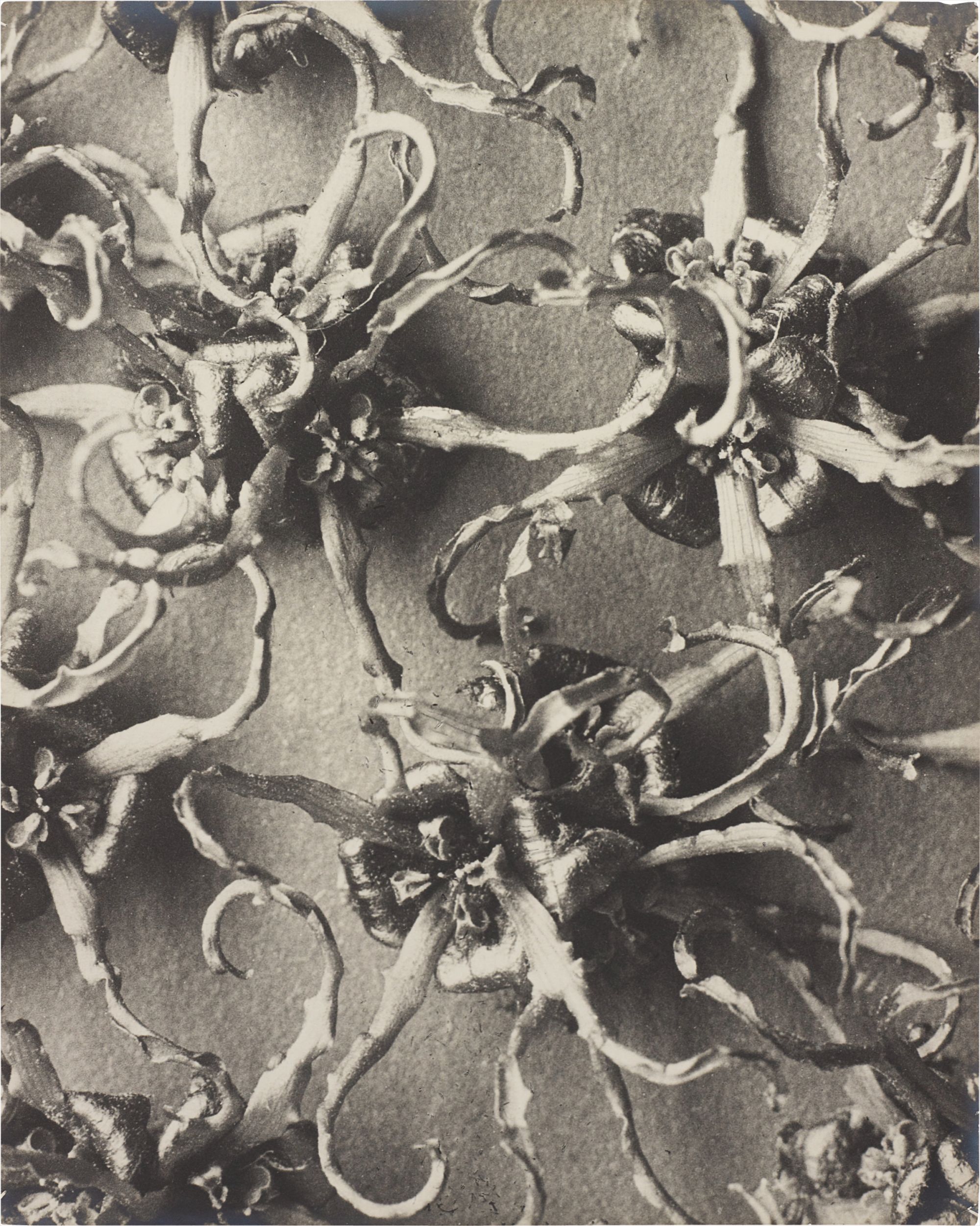 Blossfeldt photographed plant forms in strict frontal close ups against neutral backgrounds to reveal structural archetypes, a typological method the Bechers directly acknowledged as a precedent for their own industrial surveys. His systematic botanical series established a template for photographic taxonomies.