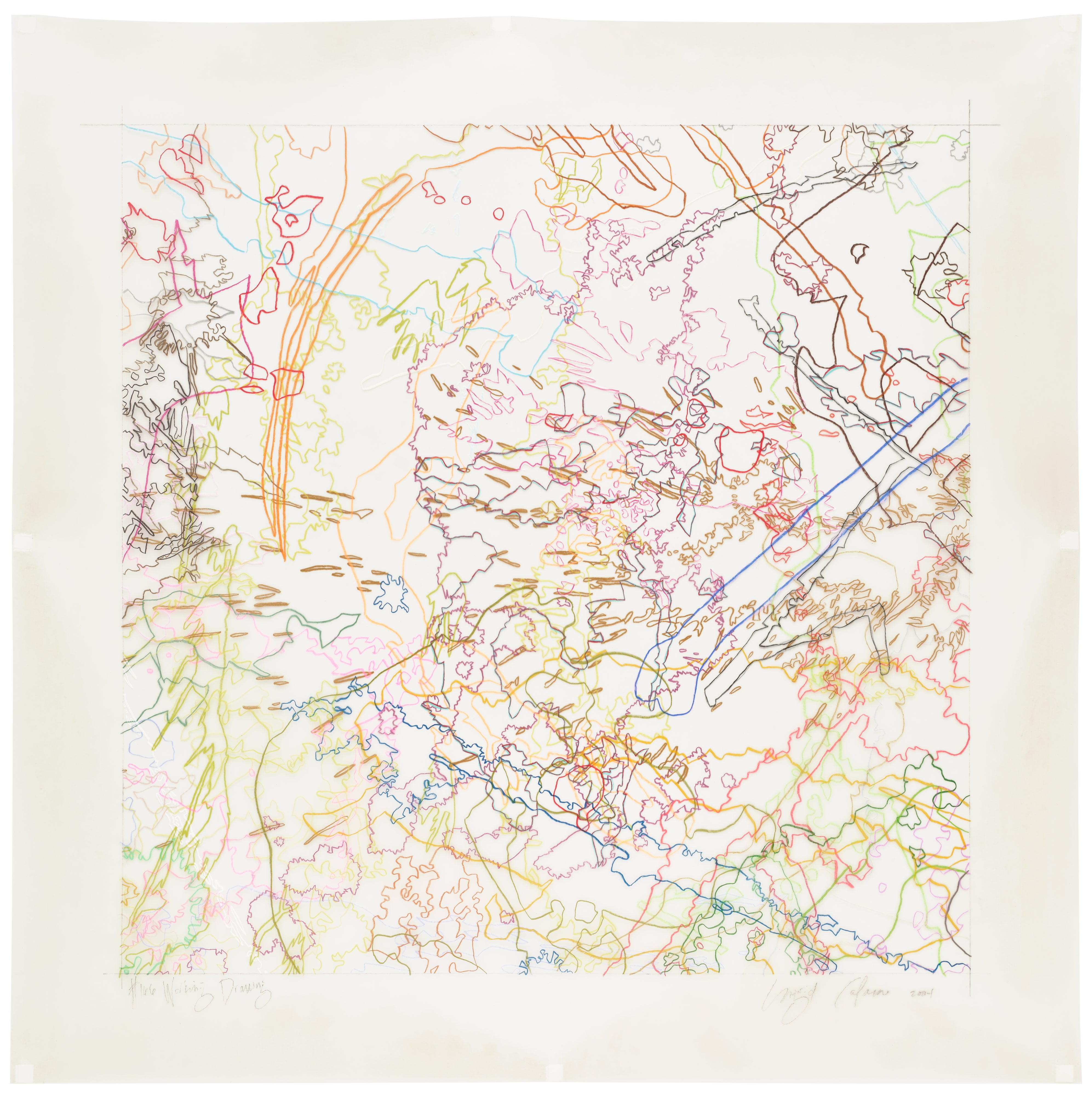 Ingrid Calame is an American artist known for her intricate, large-scale abstract paintings that originate from tracings of stains, cracks, and marks found on urban surfaces such as sidewalks and streets. She transfers these accumulated tracings onto canvas or paper, layering them in vibrant enamel paint to create luminous, biomorphic compositions that blur the boundary between abstraction and indexical mark-making. Her work engages with themes of memory, place, and the residual traces of human activity, and has been exhibited widely in major galleries and institutions.