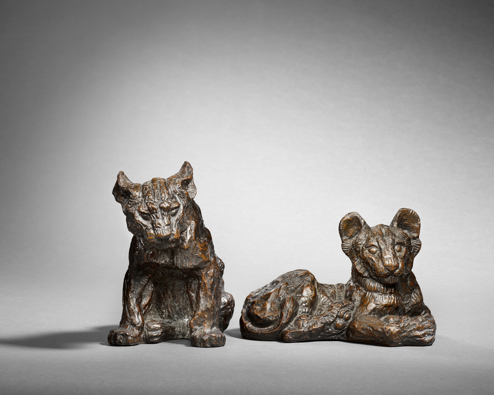 Pair of Lion Cubs, one seated, one reclining