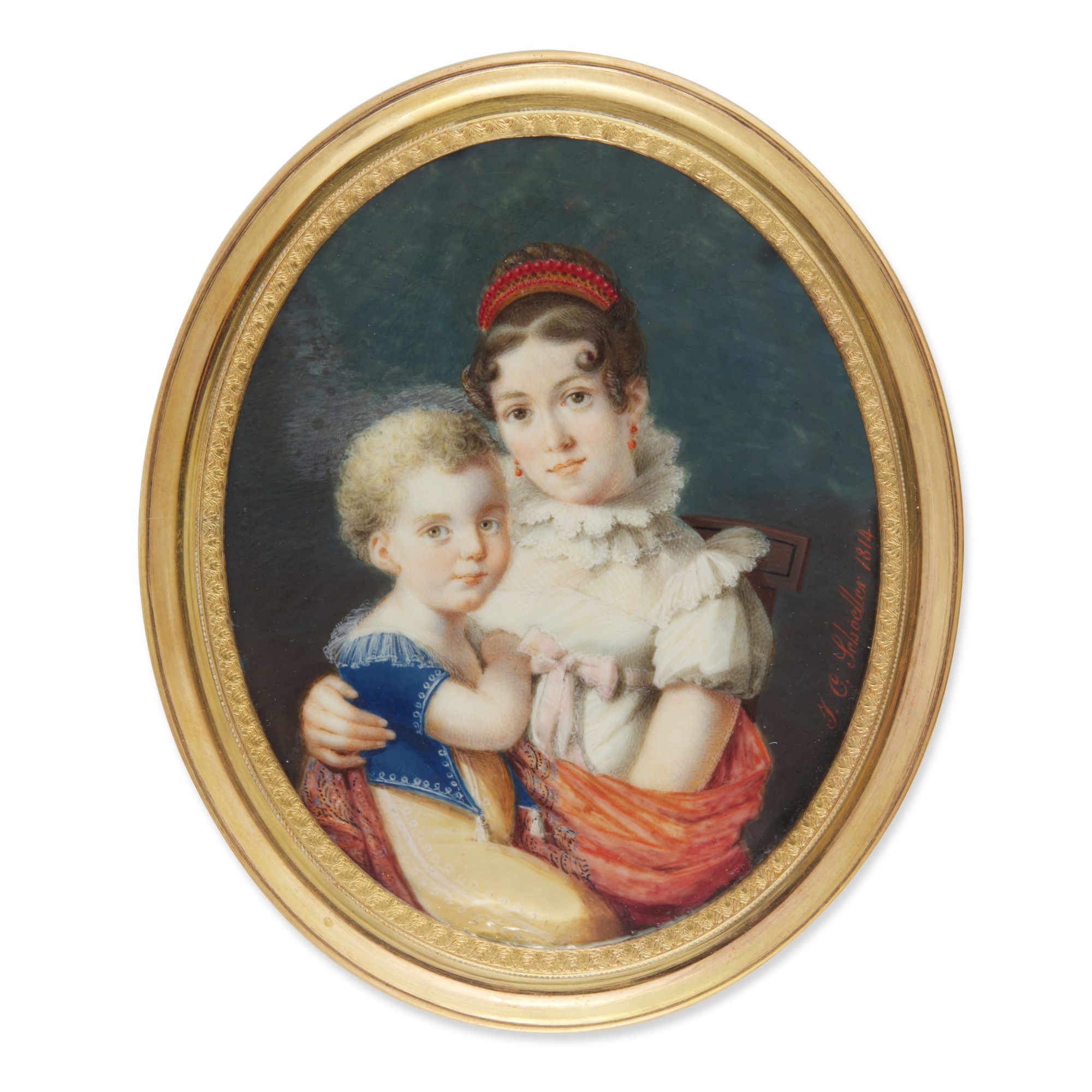 Portrait of a lady holding a small boy