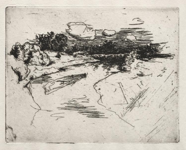 Exposure to the work of the French Impressionists and to the quieter, more atmospheric Whistlerian aesthetics shifted Twachtman's entire sensibility. He began working with lighter, more restrained palettes, building compositions of extraordinary refinement and psychological stillness. The canvases and works on paper from his years in France and the Low Countries, including his haunting etchings made in Dordrecht and along the Dutch and French coasts, show an artist in the process of becoming entirely himself. Twachtman's etchings deserve particular recognition, and for collectors approaching his work they represent one of the most compelling entry points into his vision.
