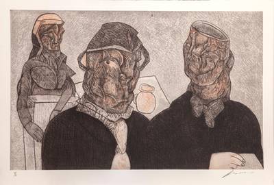 Cuevas was a draftsman, printmaker, and painter who rejected Mexican Muralism in favor of expressionistic, often grotesque figurative work. His drawings and prints explored themes of isolation, sexuality, and the human condition with aggressive line work. He exhibited internationally and his work is in collections including the MoMA and the Brooklyn Museum.