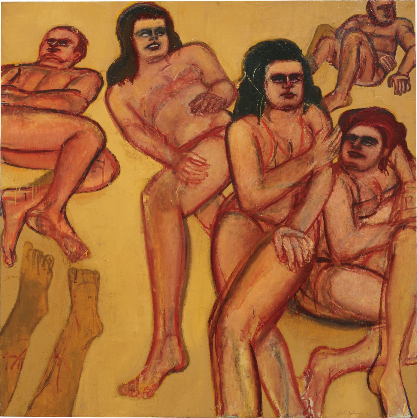 Lester Johnson (1919, 2010) was an American painter renowned for his brooding, expressionistic depictions of anonymous human figures rendered in thick, gestural brushwork and dark, moody palettes. He emerged as a significant voice in American figurative expressionism, bridging Abstract Expressionism with a persistent focus on the human form. His work appeared regularly at major auction houses and is held in numerous public and private collections across the United States.