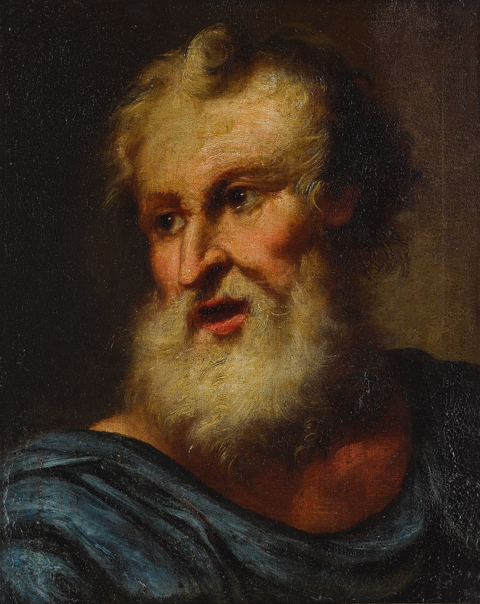 Pietro della Vecchia (1603, 1678) was a Venetian Baroque painter known for his eclectic style that blended the influence of Giorgione and the 16th-century Venetian masters with his own inventive, often theatrical approach. He was particularly celebrated for his genre scenes, portraits, and historical compositions featuring soldiers, philosophers, and allegorical figures rendered with rich color and expressive character. His work was highly sought after by collectors during his lifetime and continues to appear regularly at major auction houses.