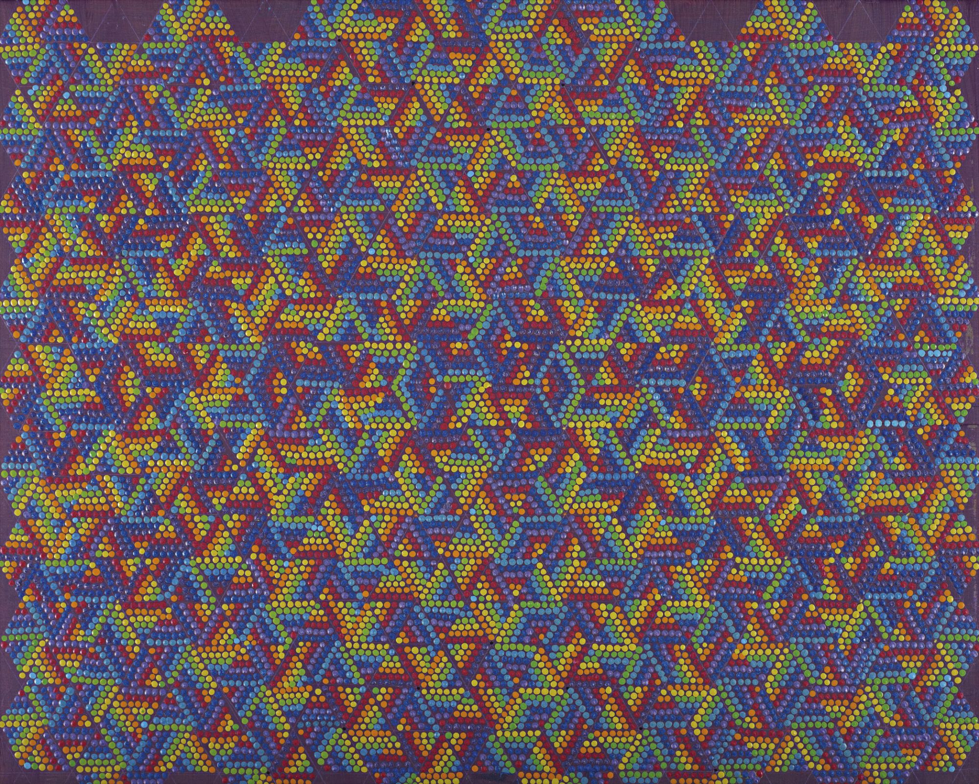 Xylor Jane (born 1968) is an American painter known for her intricate, mathematically-driven compositions that incorporate prime numbers, magic squares, and numerical sequences into vibrant, psychedelic color fields. Her densely patterned works blend obsessive mark-making with systems-based logic, creating hypnotic grids and dot-based structures that reward close inspection. She has exhibited widely and is considered a significant figure in contemporary pattern and abstraction.