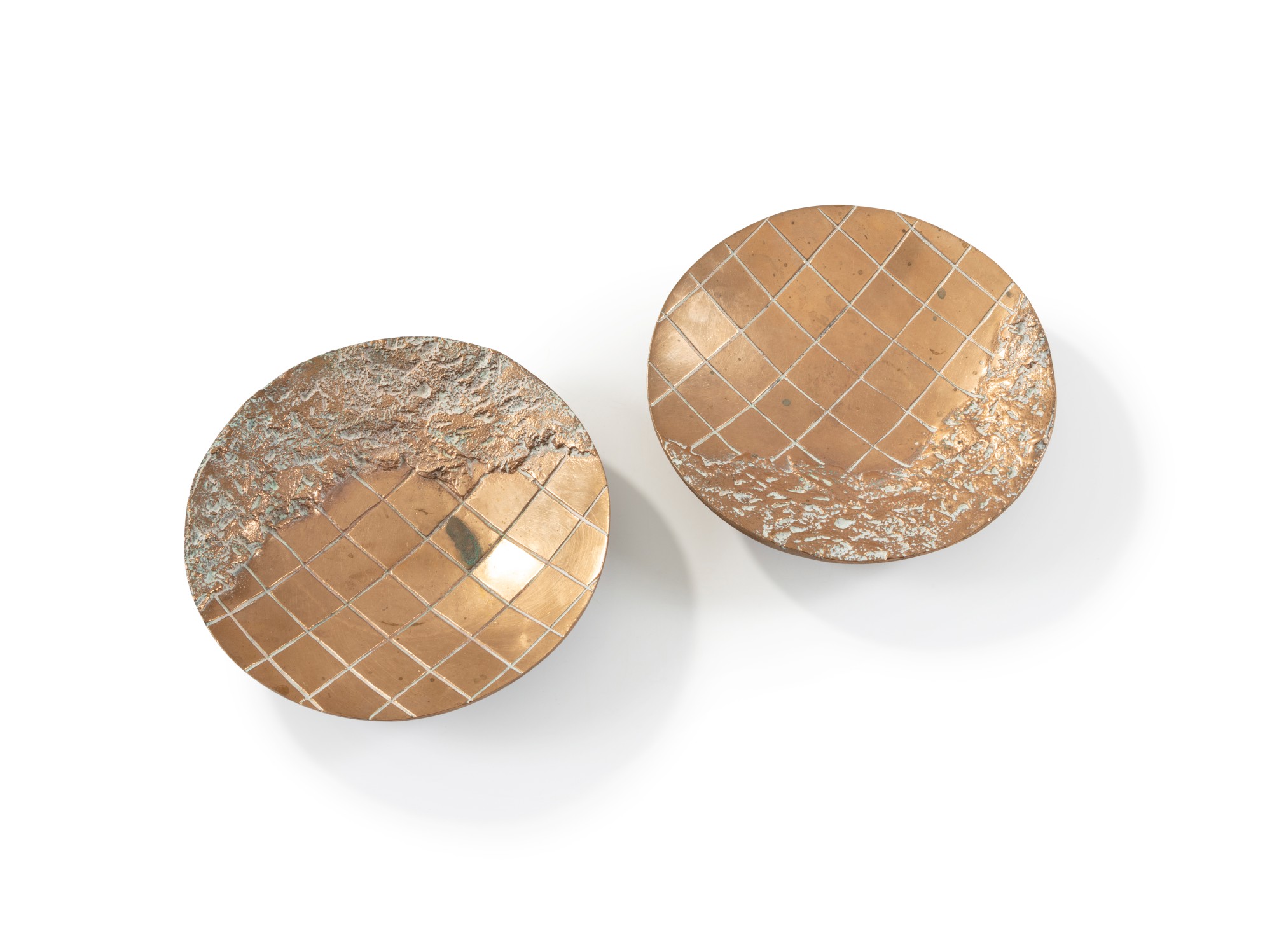 A 20th century decorative work featuring a pair of cups crafted in gilt bronze. This refined piece exemplifies the luxury metalwork traditions of the modern era.