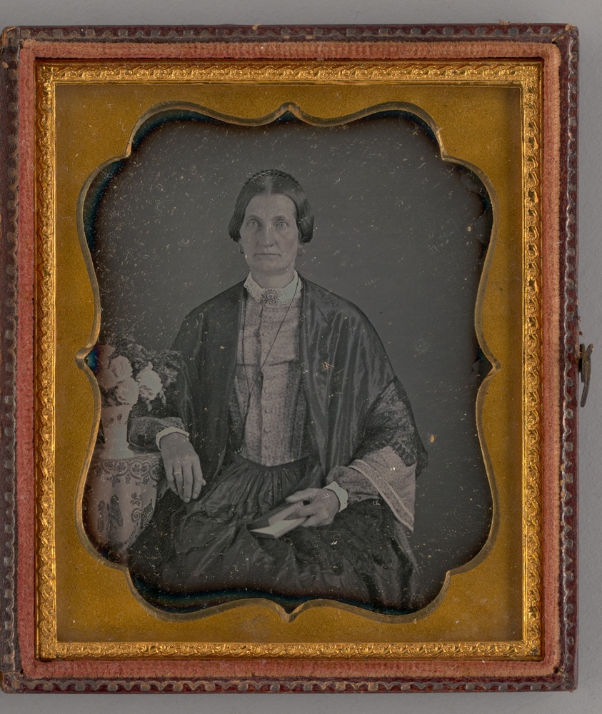 Captured in the mirror-like surface of a daguerreotype, this formal portrait exemplifies the precise detail and silvery tones that made this early photographic process so prized in mid-19th century America.