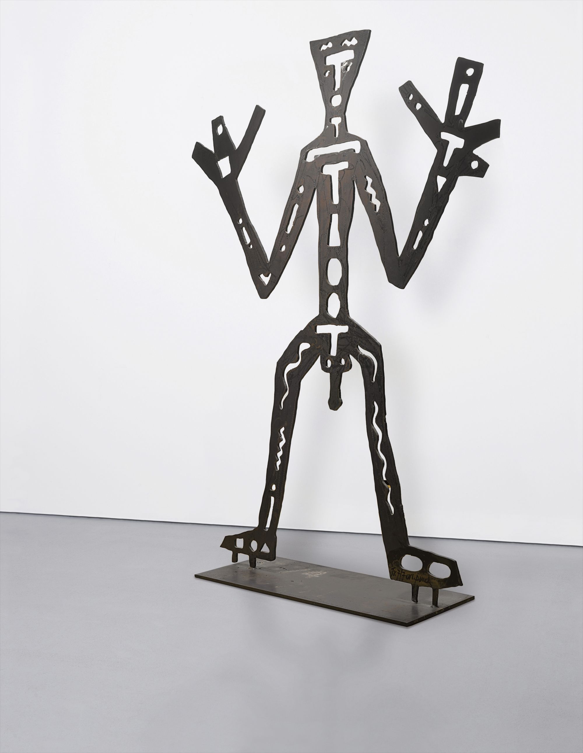 TX is a dynamic work by German artist A.R. Penck, characterized by his signature primitive, symbol-laden visual language that draws on cave paintings, cybernetics, and systems theory. The composition likely features Penck's iconic stick figures, hieroglyphic-like marks, and bold, gestural forms that blur the boundaries between art, language, and communication. Through this raw and energetic imagery, Penck constructs a complex personal mythology that reflects his experiences navigating political and social systems in divided Germany.