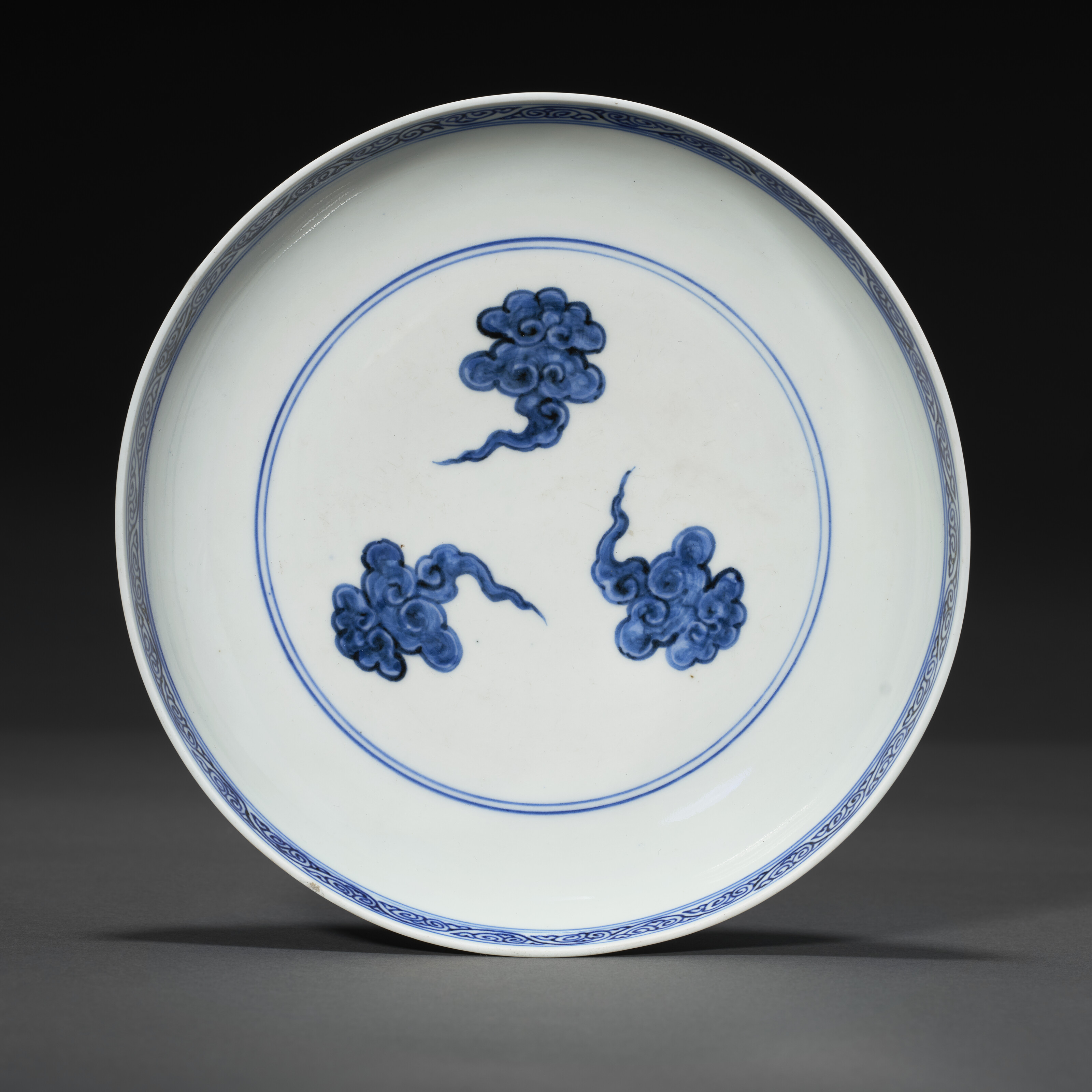 A Rare Blue And White 'clouds And Dragons' Dish