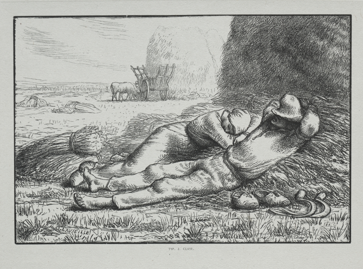 "Four Hours of the Day: Noon" is a wood engraving by French artist Adrien Lavieille that depicts the midday hours through a detailed landscape composition. The work exemplifies the technical precision characteristic of 19th century wood engraving, a medium that allowed for fine lines and intricate tonal variations. As part of a series exploring different times of day, this print captures the particular quality of light and activity associated with noon through Lavieille's skillful use of the wood engraving technique.
