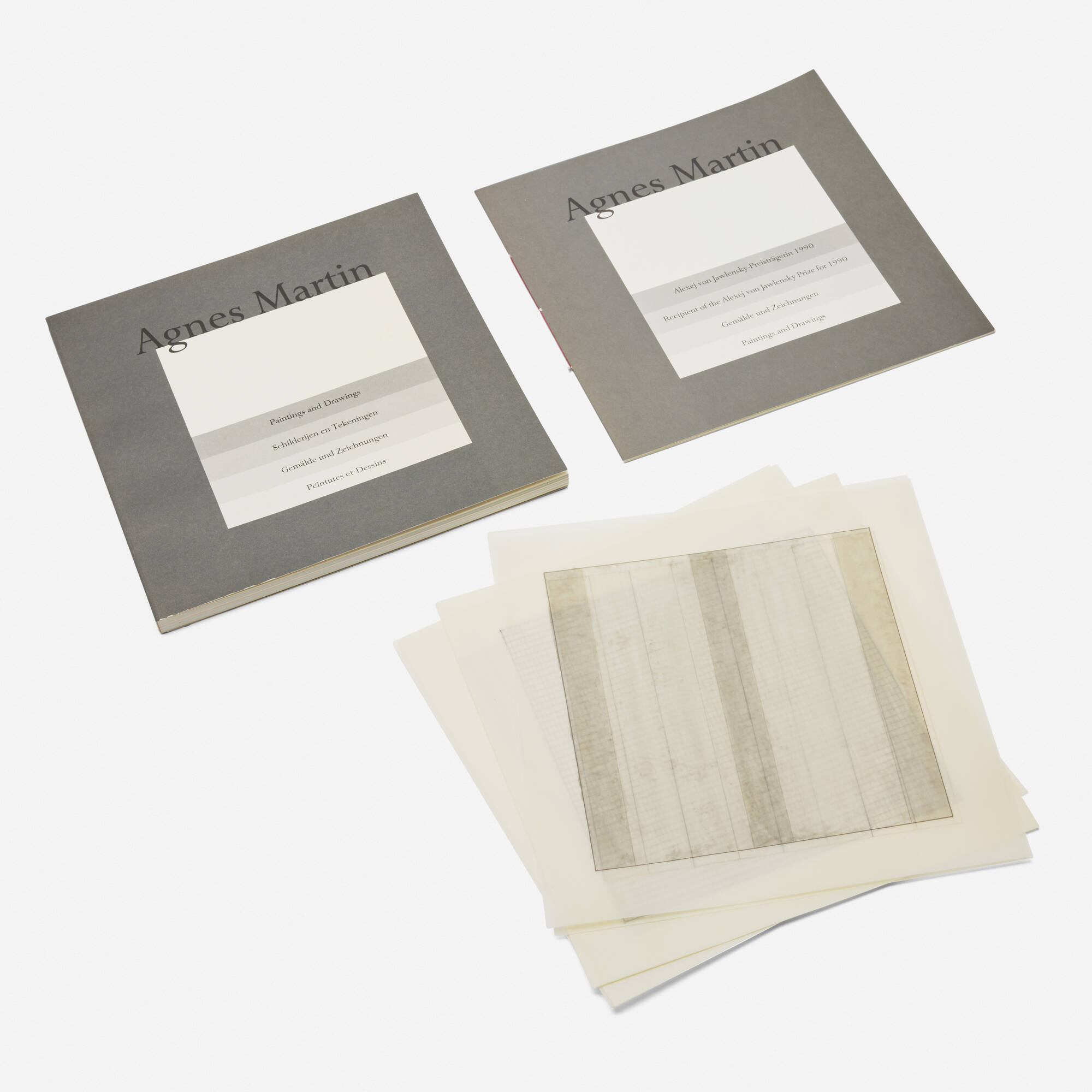 This complete portfolio is comprised of ten unbound lithographs contained in original slipcase and accompanied by a monograph produced for the exhibition and supplemental catalog celebrating the receipt of the Alexej von Jawlensky Prize. This work is from the edition of 2500 printed by Lecturis, Eindhoven and published by Nemela & Lenzen GmbH, Monchengladback and the Stedelijk Museum, Amsterdam for Agnes Martin’s 1991 retrospective at the Stedelijk Museum, Amsterdam. Sold with original portfolio case.