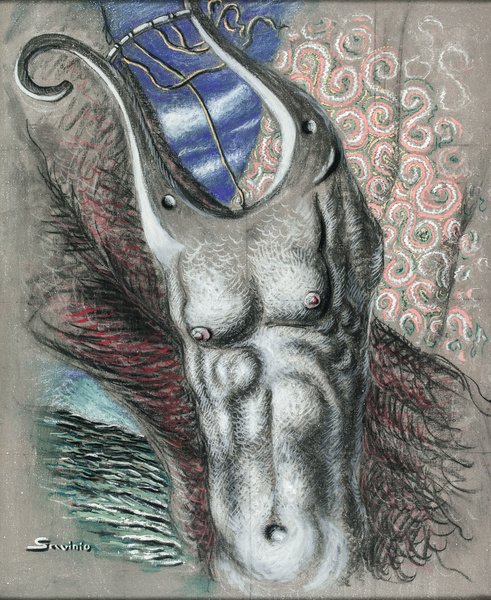 Savinio's interpretation of the mythological musician demonstrates his unique blend of metaphysical painting with classical themes, creating an enigmatic narrative.