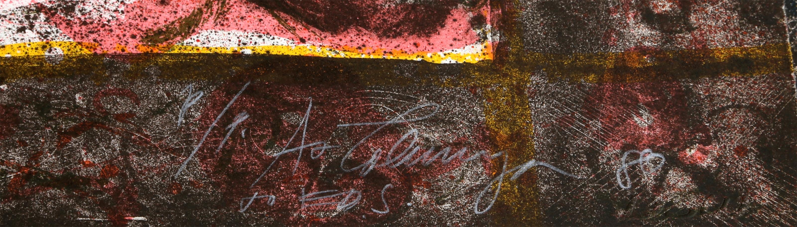 "Payaso (Red)" is a lithograph by Mexican artist Alejandro Colunga that explores themes of performance and identity through the figure of a clown. The work exemplifies Colunga's characteristic style, which blends surrealist and figurative elements with vibrant color and expressive line work. As part of his body of work examining theatrical and folkloric subjects, this print demonstrates the artist's skillful use of the lithographic medium to create dynamic compositions imbued with both whimsy and psychological depth.