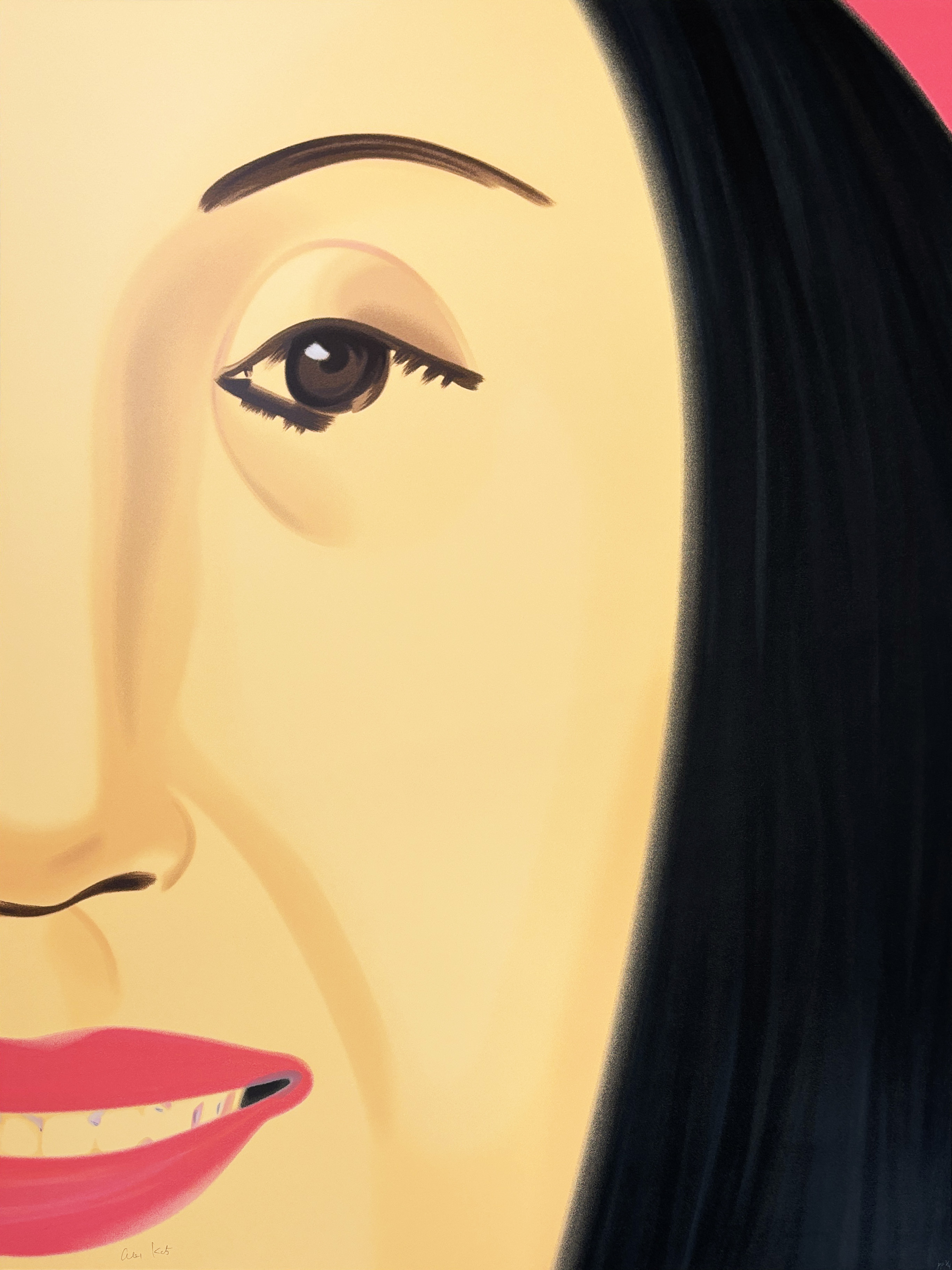 This 13-color silkscreen continues Katz's decades-long exploration of his wife Ada as subject, demonstrating his mastery of the medium's capacity for bold, flat color planes and crisp edges. Part of a portfolio series, the work exemplifies the artist's signature reductive approach to portraiture, distilling form and color to their essential elements.
