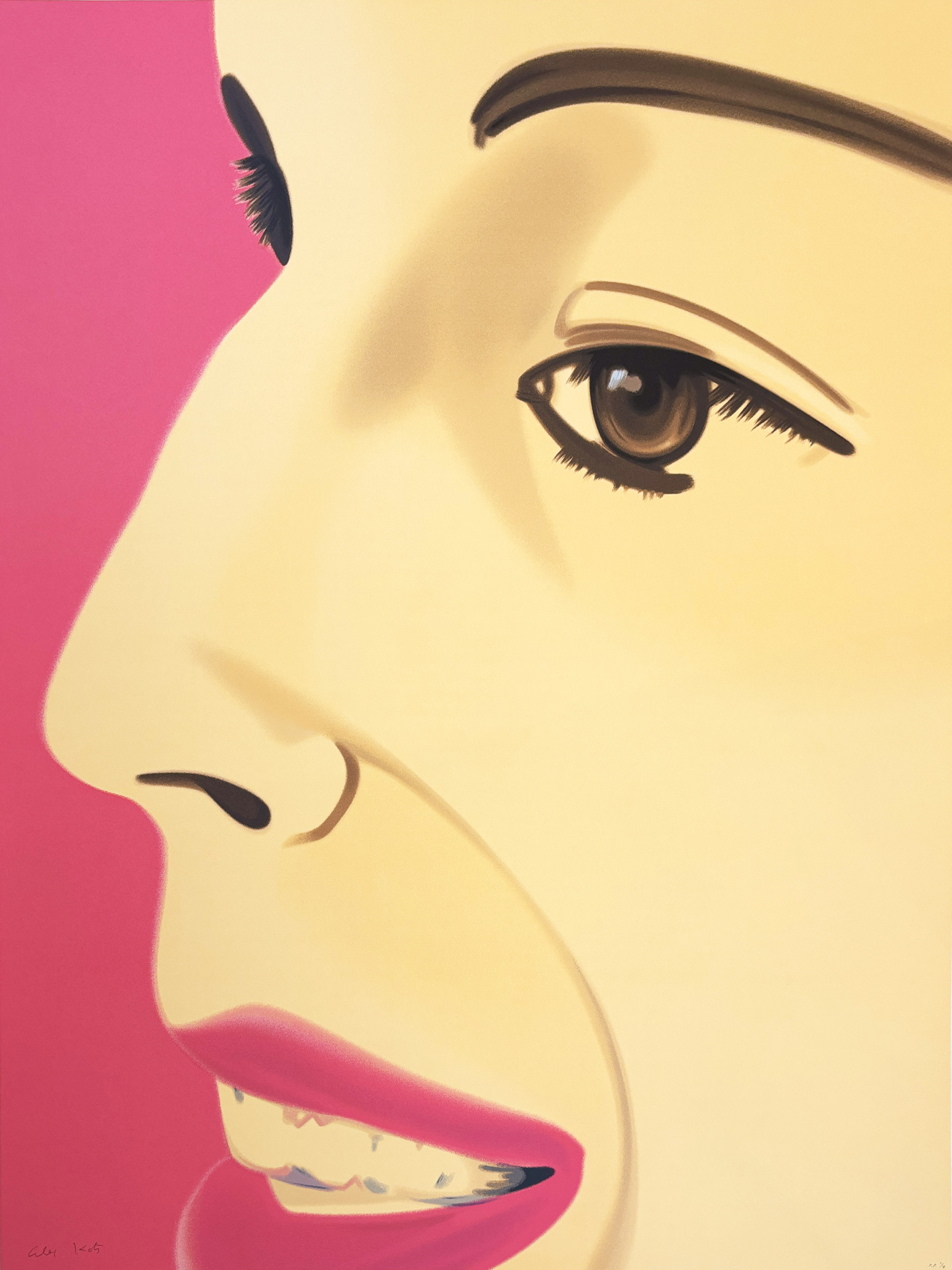 This 13-color silkscreen demonstrates Katz's masterful reduction of form and color in his ongoing portraiture of his wife Ada, a subject he has explored for over six decades. The sophisticated color separation technique captures his signature flat, graphic style while maintaining the intimate immediacy that defines his most celebrated figurative works.