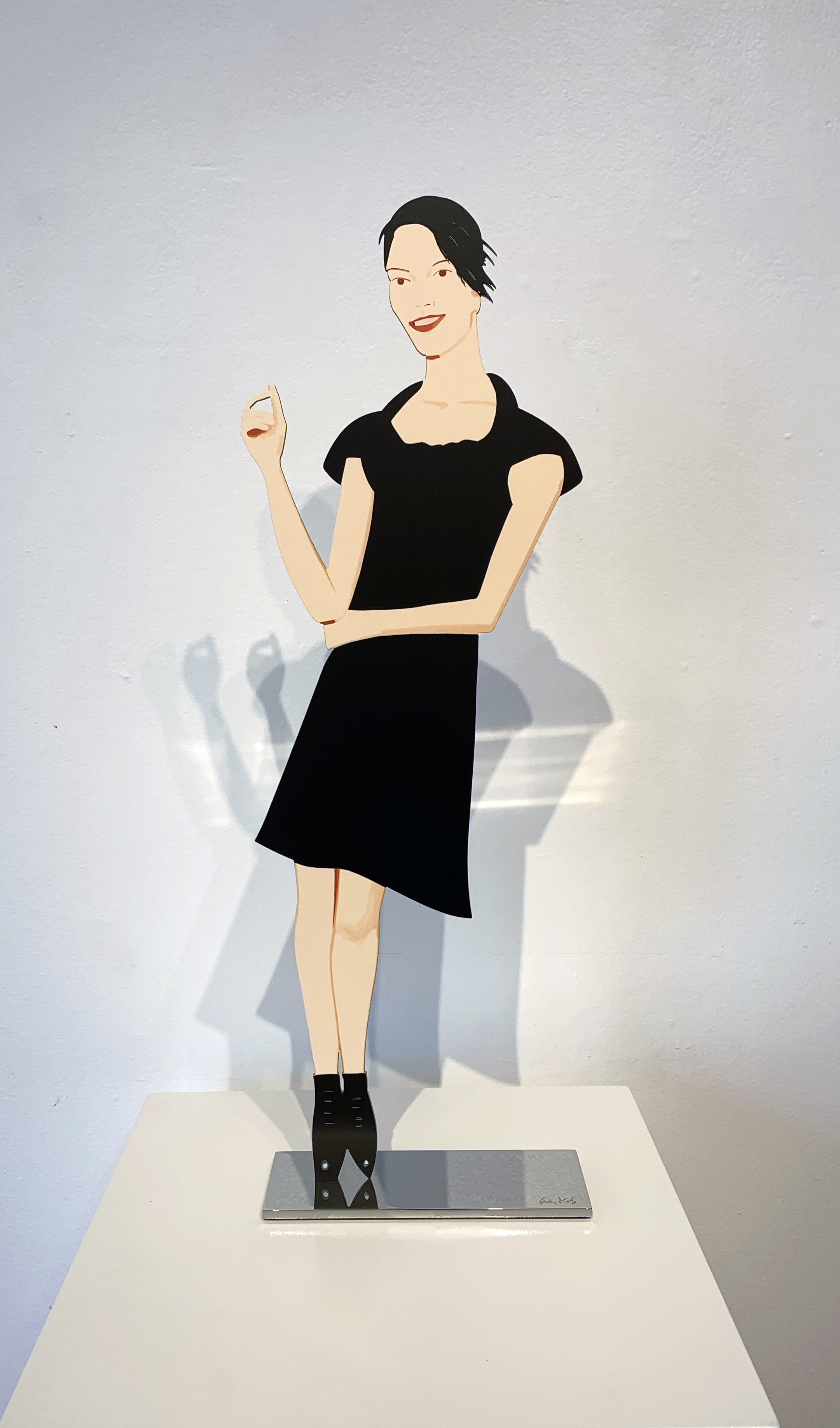 This sculptural work translates Katz's signature flat, graphic portraiture into three-dimensional form, employing powder-coated aluminum to maintain his characteristic bold simplicity while exploring the interplay between painting and sculpture. The cutout technique preserves the artist's iconic reductive style, transforming his painted silhouettes into architectural objects that occupy physical space.