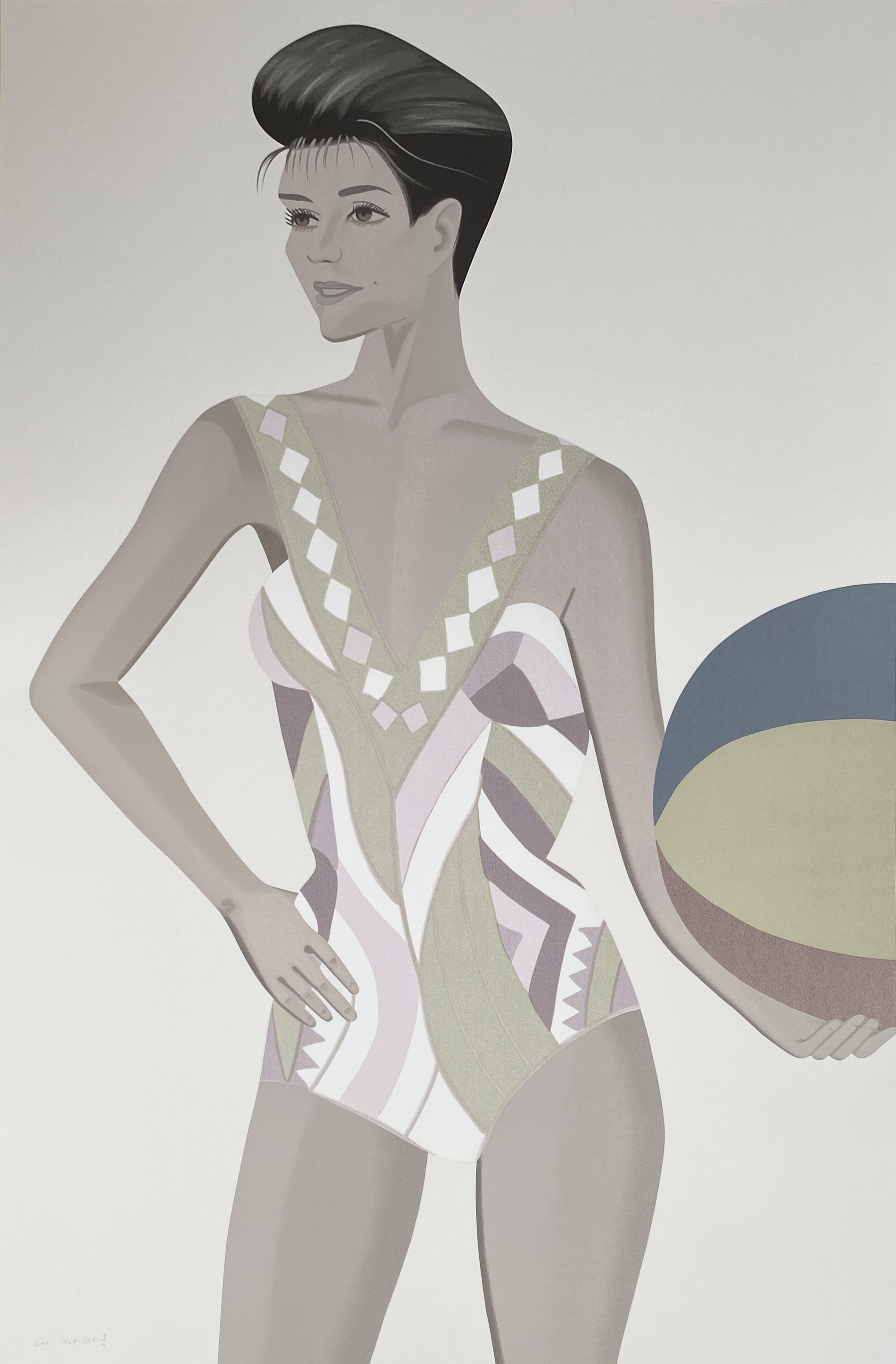 This vibrant 33-color silkscreen exemplifies Katz's mastery of the medium, employing an exceptionally complex color palette to render his characteristic portrait subject with luminous precision. Part of his "Chance" series, the work demonstrates the artist's continued exploration of intimate portraiture through the technical sophistication of large-scale printmaking.