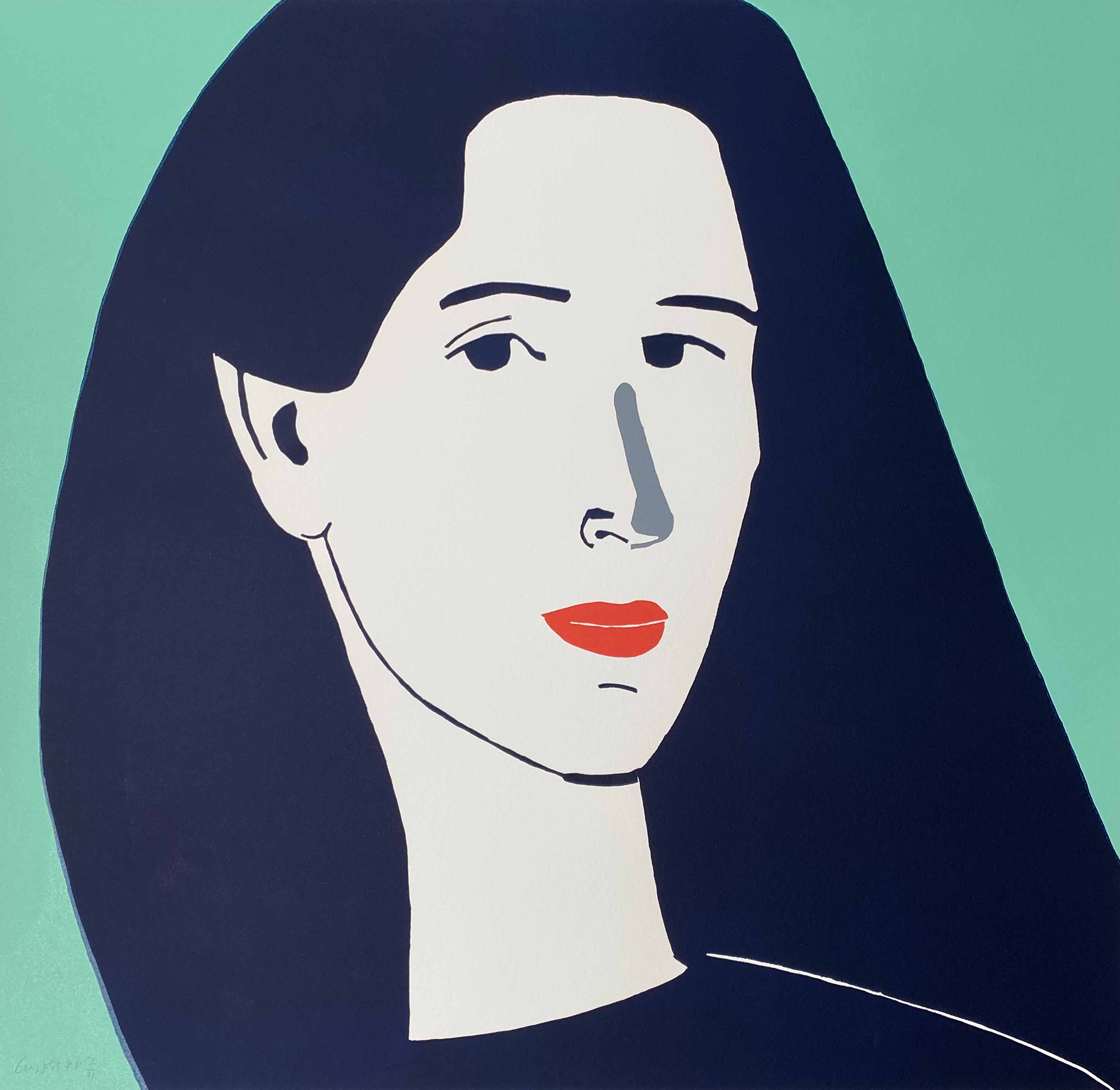 This 2014 linocut demonstrates Katz's masterful translation of his signature style into printmaking, capturing his characteristic bold simplification and flat color planes through the medium's inherent graphic qualities. The work exemplifies how the artist's distinctive approach to portraiture—emphasizing clean lines and reduced forms—finds natural expression in the linocut's stark contrasts.