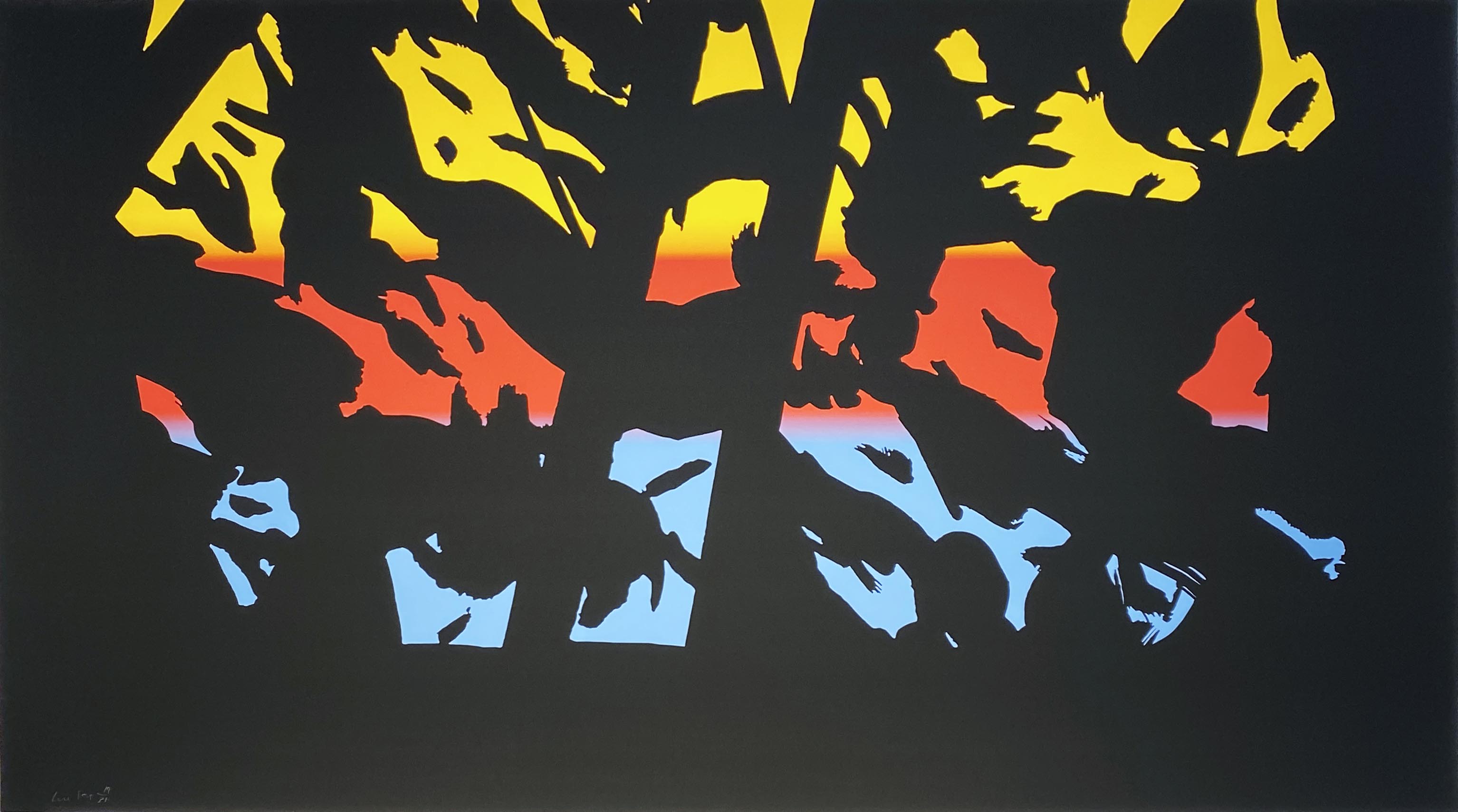 In this 2020 limited edition print, Katz employs his signature reductive approach to capture the ephemeral quality of twilight through bold, simplified forms and saturated color fields. The work demonstrates the artist's masterful translation of his painterly aesthetic to the print medium, utilizing archival pigment inks to achieve the luminous, atmospheric effects characteristic of his landscape series.