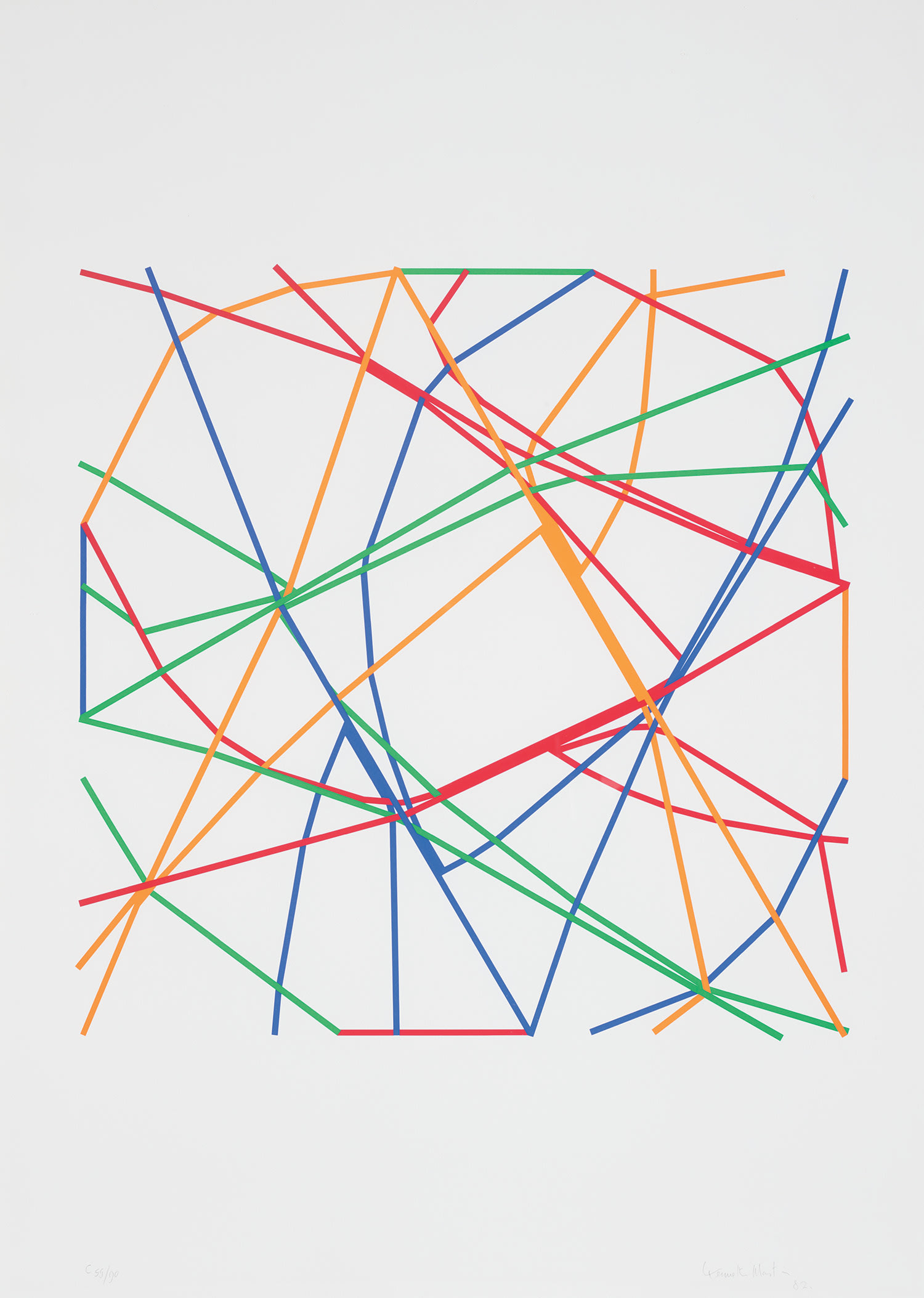 Martin constructed delicately balanced mobile sculptures using suspended geometric metal elements arranged in rhythmic sequences, closely echoing Calder's approach to kinetic balance, spatial composition, and abstract formal relationships.