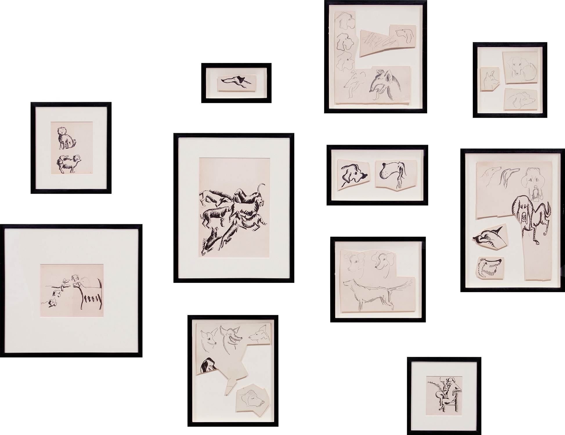 Alexander Calder's '18 works: (i-xviii)' (1925) is a series of ink and pencil drawings on paper showcasing the artist's early explorations of form. These studies represent preliminary investigations that would inform his later sculptural innovations.