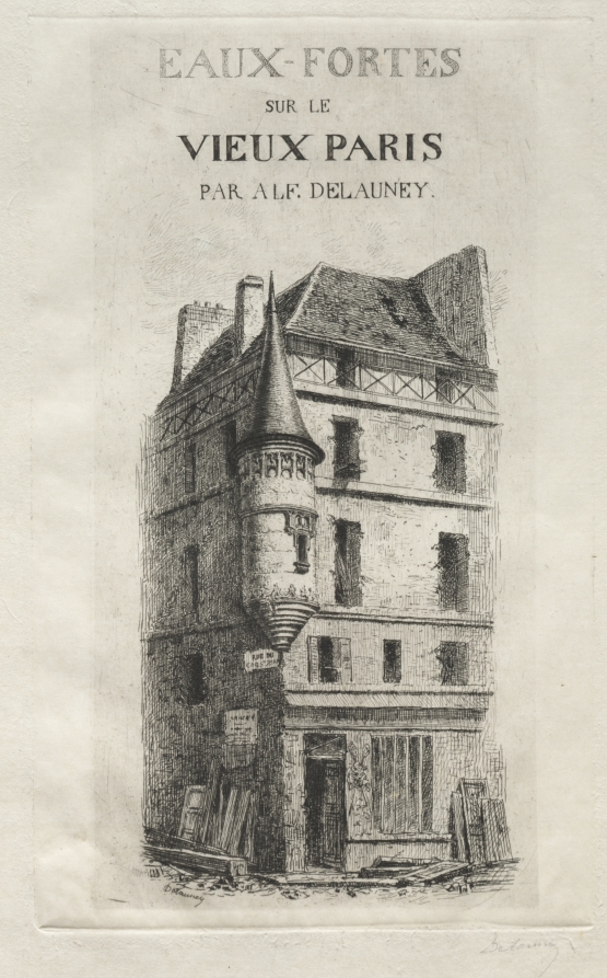 Combining etching and drypoint techniques, this print captures the picturesque details of old Parisian architecture before its destruction in the name of urban progress.