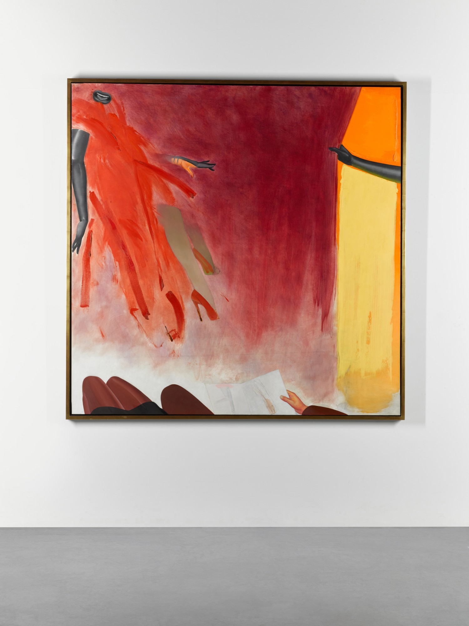 Allen Jones's 'Command Performance' is an oil on canvas work from 1975 that reflects the artist's interest in figuration and narrative. The painting likely explores themes of power dynamics and human interaction through bold chromatic composition.