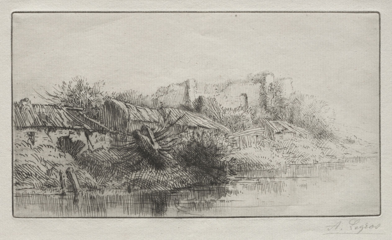 Created during Legros's early period, this melancholic etching captures the artist's fascination with rural decay and the passage of time through careful attention to architectural detail.