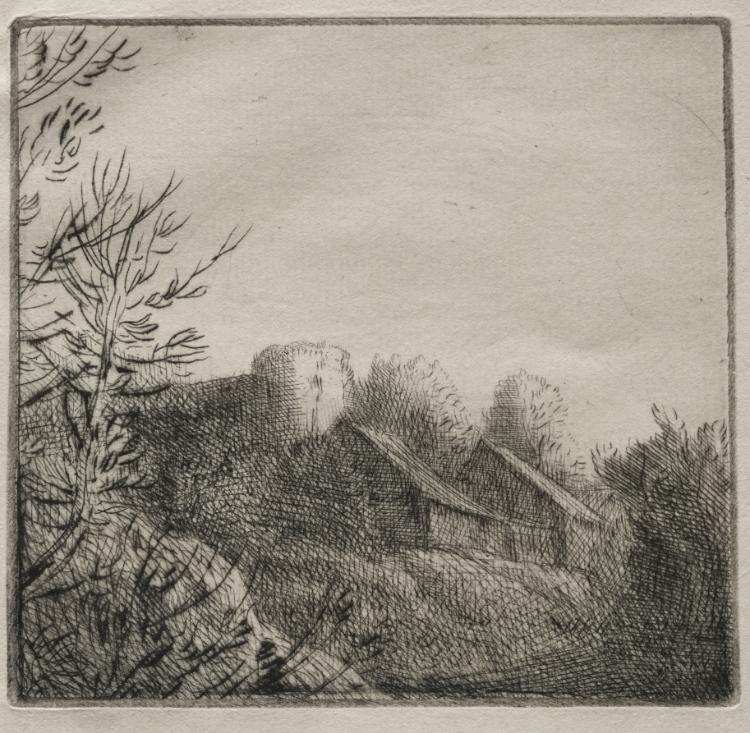 Depicting rural French architecture with meticulous attention to texture and light, the drypoint showcases Legros's ability to find monumental quality in humble subjects.