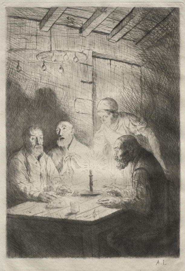 Translating social realism into the intimate medium of drypoint, the work reflects Legros's sympathy for the poor and his ability to convey dignity in hardship.