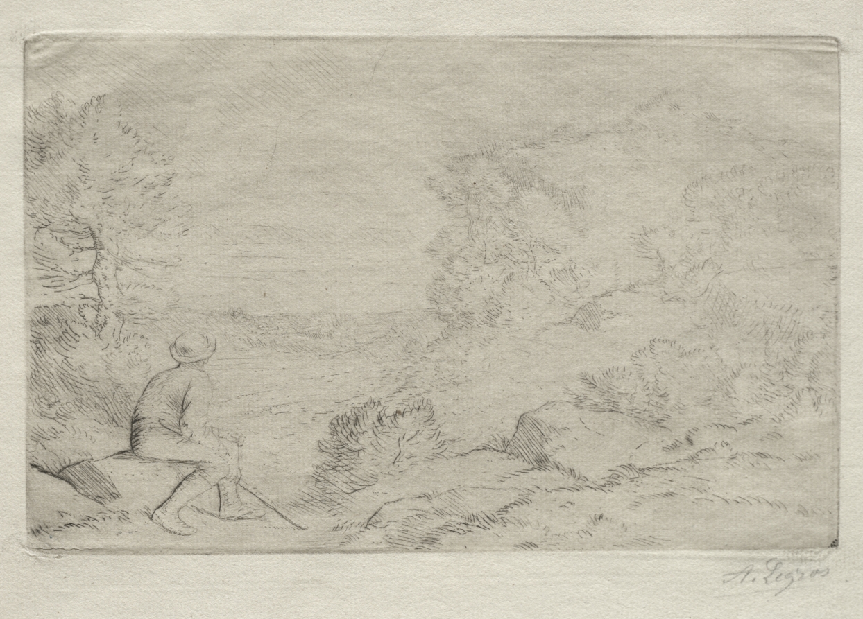 Alphonse Legros's "Rocks" is a striking etching and drypoint that demonstrates the artist's masterful command of printmaking techniques to render geological forms with remarkable tactile quality. The work showcases Legros's ability to use varied line work and tonal gradations to convey the weight, texture, and spatial presence of stone formations. As a French Realist printmaker of the 19th century, Legros was known for his technical virtuosity in both etching and drypoint, combining these methods to achieve rich, nuanced surface effects in this subject study.