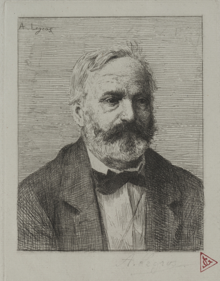 Features the celebrated French author in a portrait that combines etching and drypoint techniques, reflecting Legros' connection to the literary circles of his era.