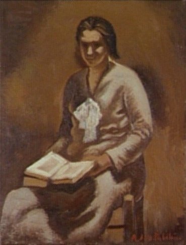 La Patellière's contemplative figure reflects the post-war return to figuration and traditional values, rendered with subtle tonal variations in grey.