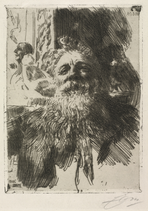 One of the most significant artistic collaborations of the early 20th century, this portrait captures the intense creative energy of the great French sculptor through Zorn's expressive line work.