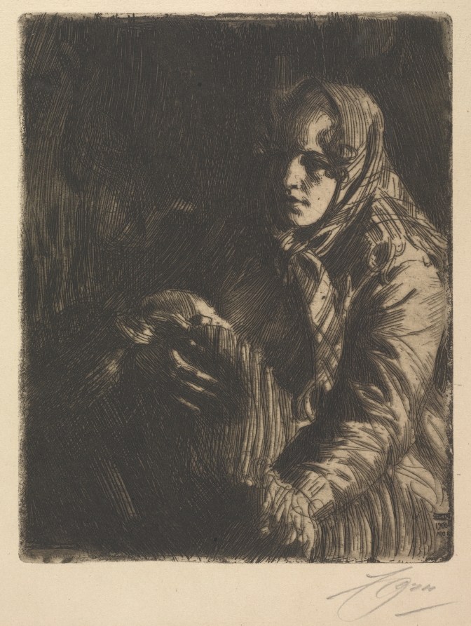 Combining religious iconography with Zorn's naturalistic approach, this work represents an unusual departure into spiritual themes while maintaining his distinctive printmaking style.