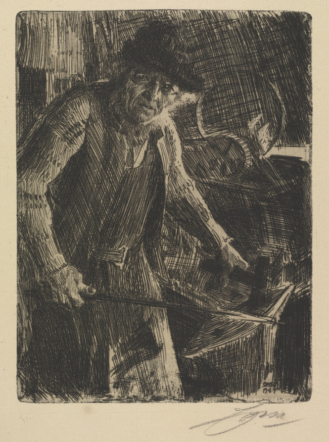 Celebrating traditional Swedish craftsmanship, this powerful composition combines Zorn's interest in folk culture with his mastery of etching's capacity for dramatic contrasts.