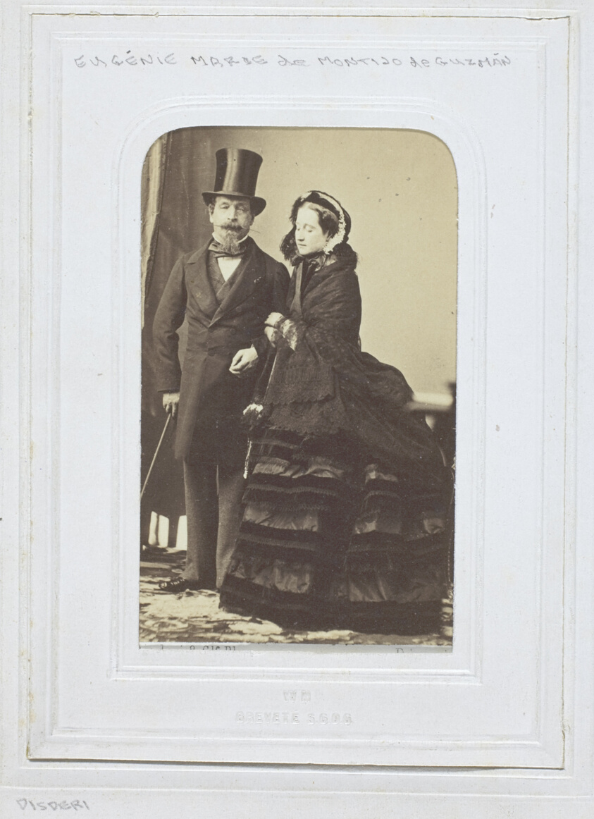 Imperial couple's formal portrait exemplifies the grandeur of Second Empire France through Disdéri's innovative photographic techniques.